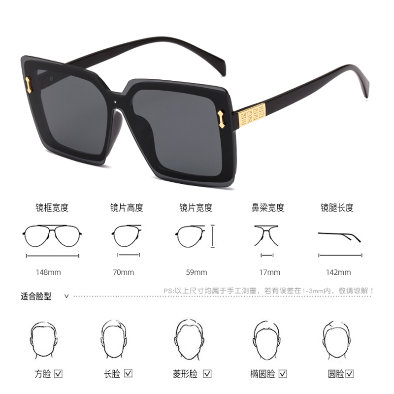 Fashion Simple Sunglasses Versatile Black Sunglasses Female Big Face Ins Net Red Blogger New Street Shooting Sunscreen Glasses