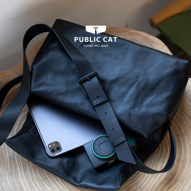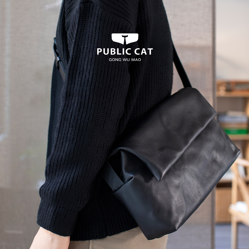 First layer cowhide shoulder bag PUBLICCAT official cat designer European and American casual leather men's messenger bag
