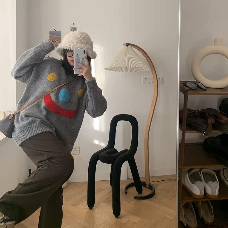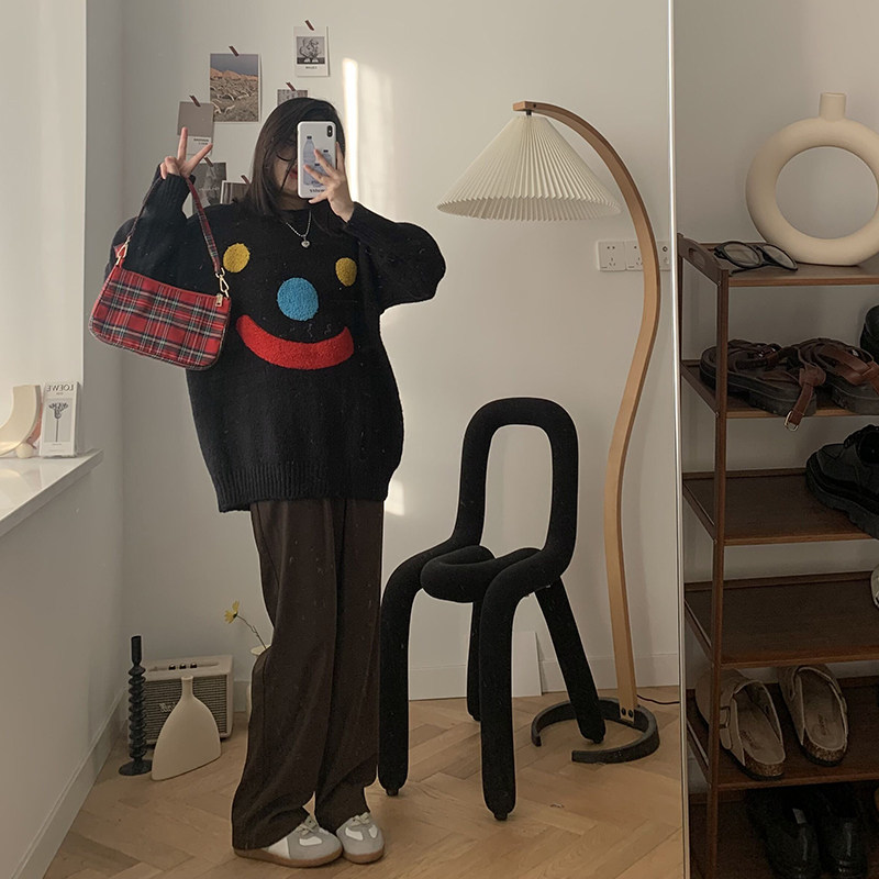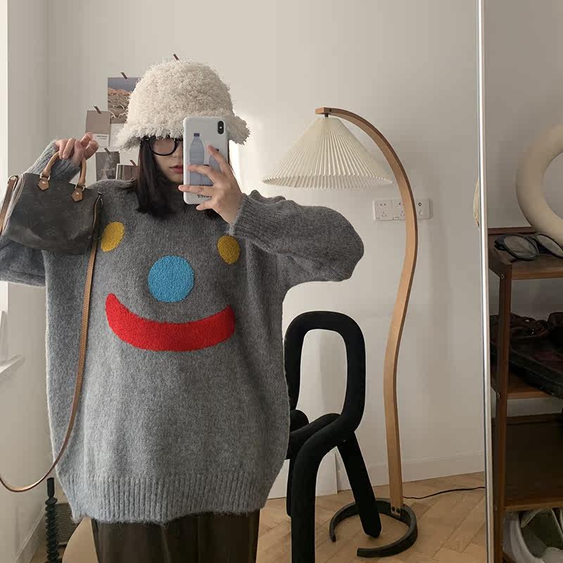 Generally cute clown pattern pullover sweater women 2021 new style inside and outside wearing patches loose lazy wind thick