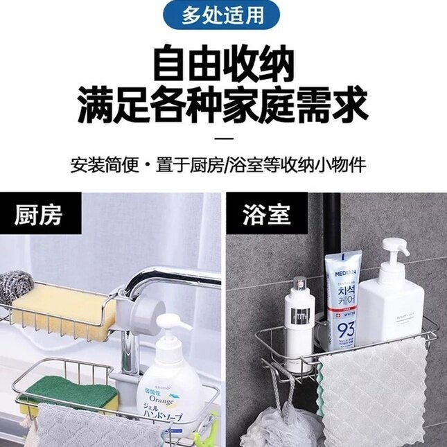 Stainless steel faucet rack pool hanging basket drain rack sink washbasin rag rack kitchen storage artifact