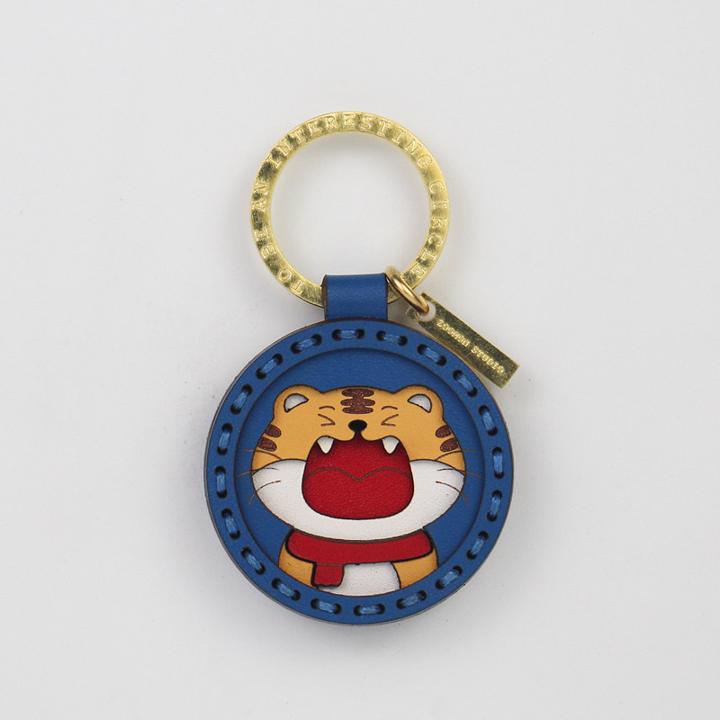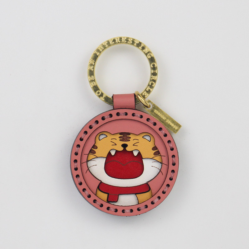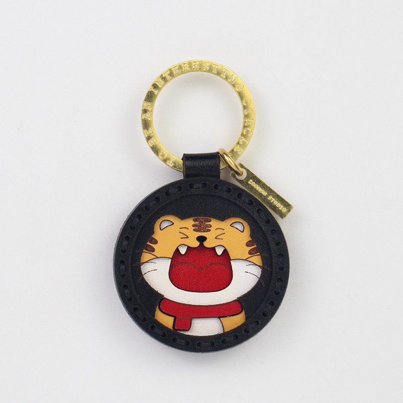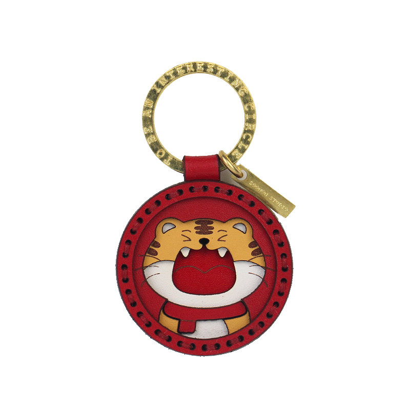Handmade Genuine Leather Original Zodiac Tiger Car Key Buckle Cartoon Tiger Pendant This Life Year Gift Lettering Custom