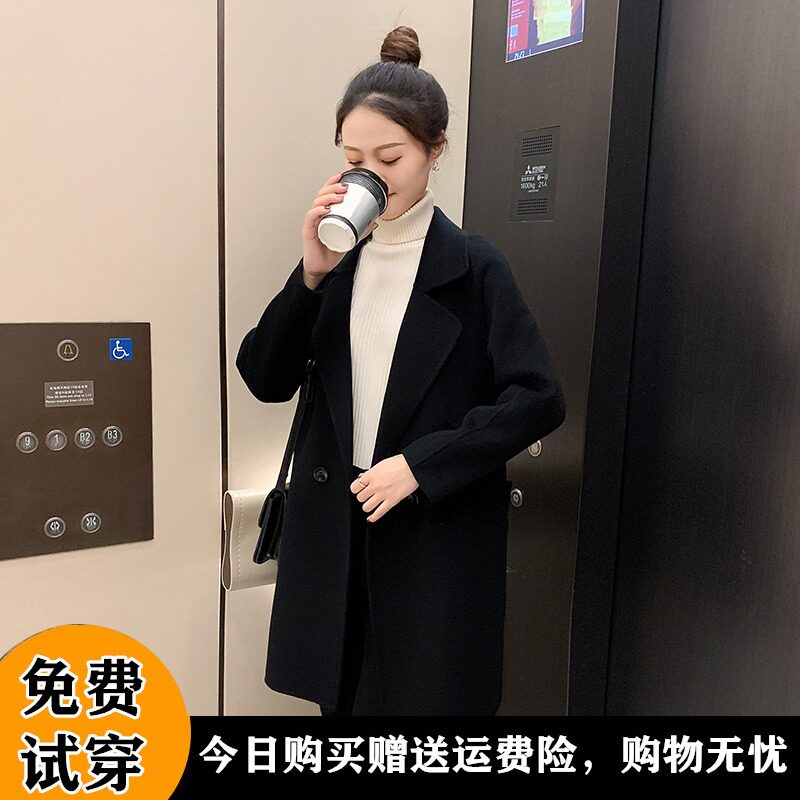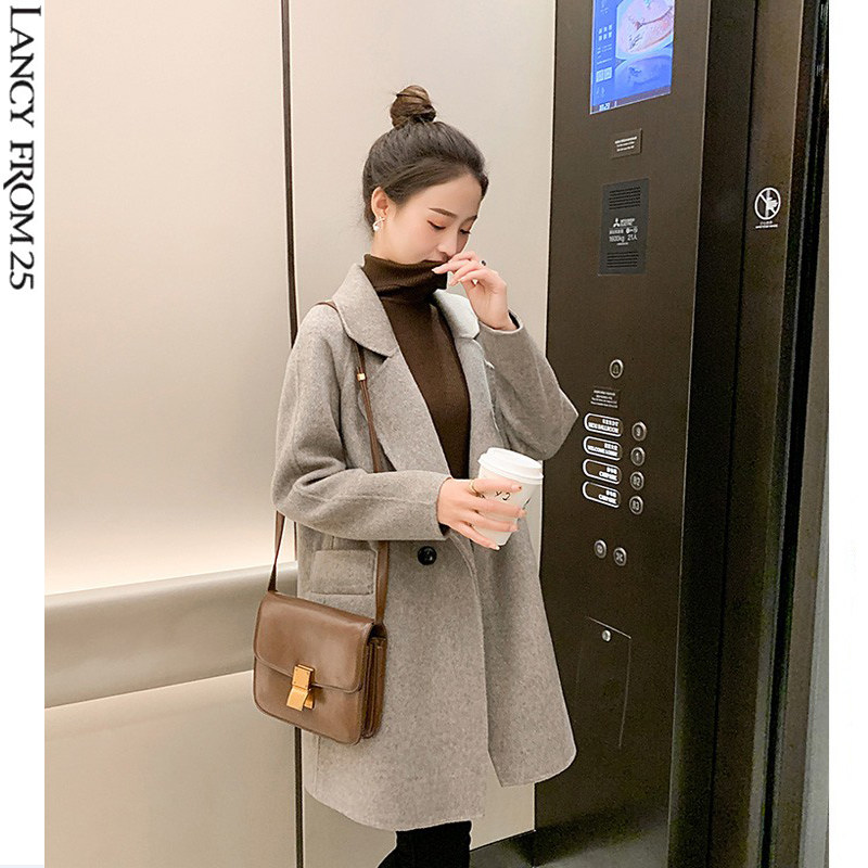 Langzi 2022 winter new double-sided cashmere coat women's fashion slim small woolen coat short