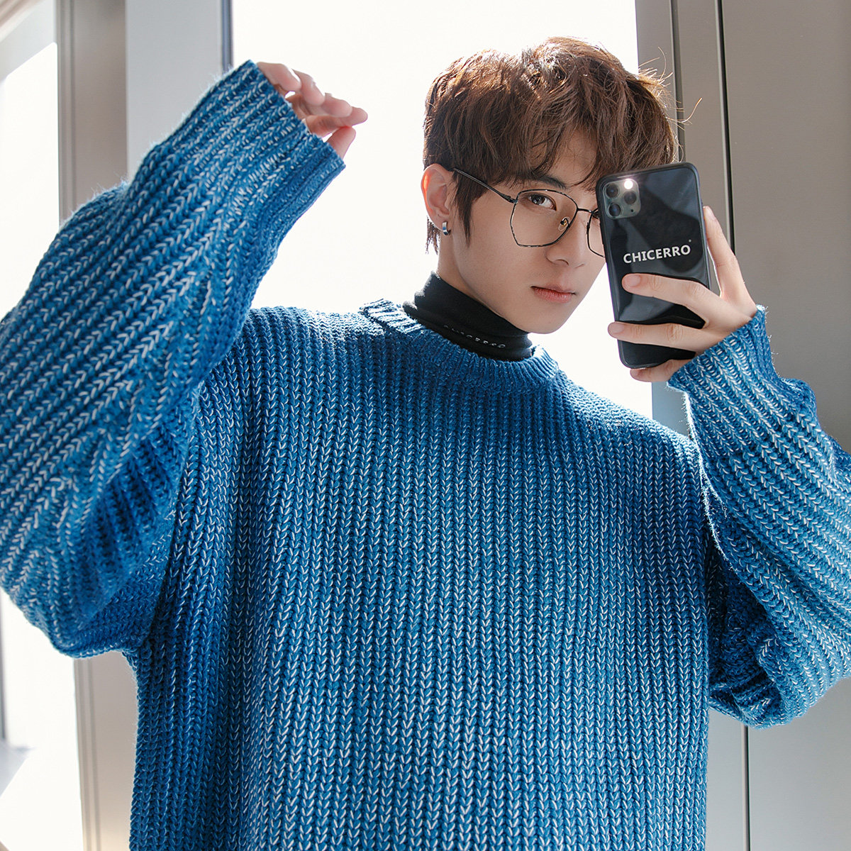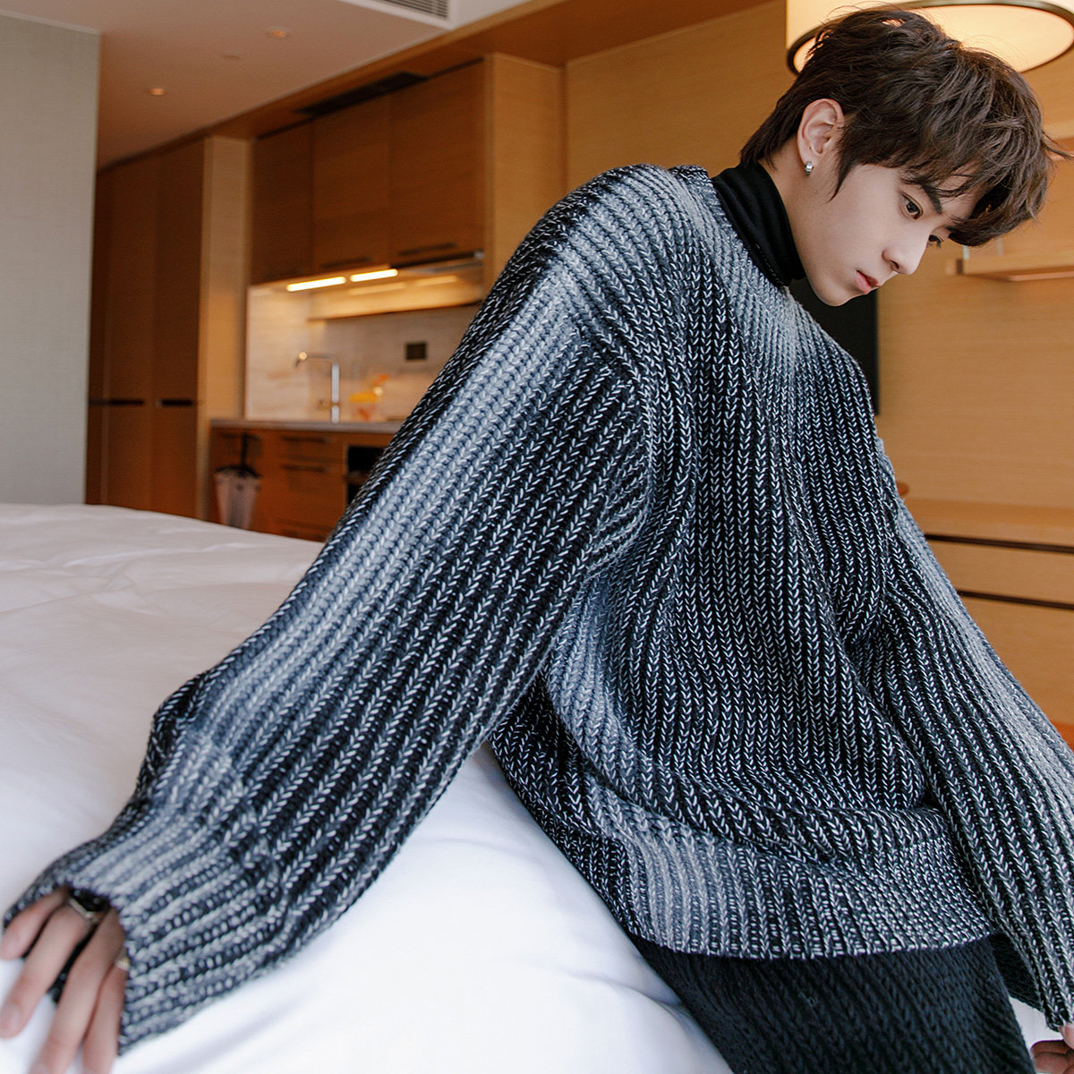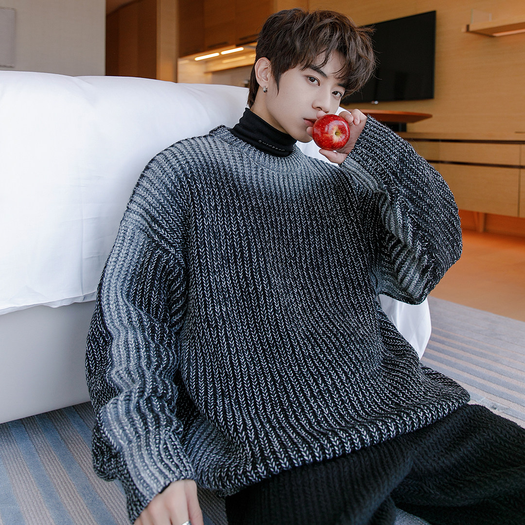 CHICERRO Sicilian men's clothing Gradual Layer Color Dabbed Sweater Male Round Collar Loose sleeve Casual Stitch Weaselwear Jacket