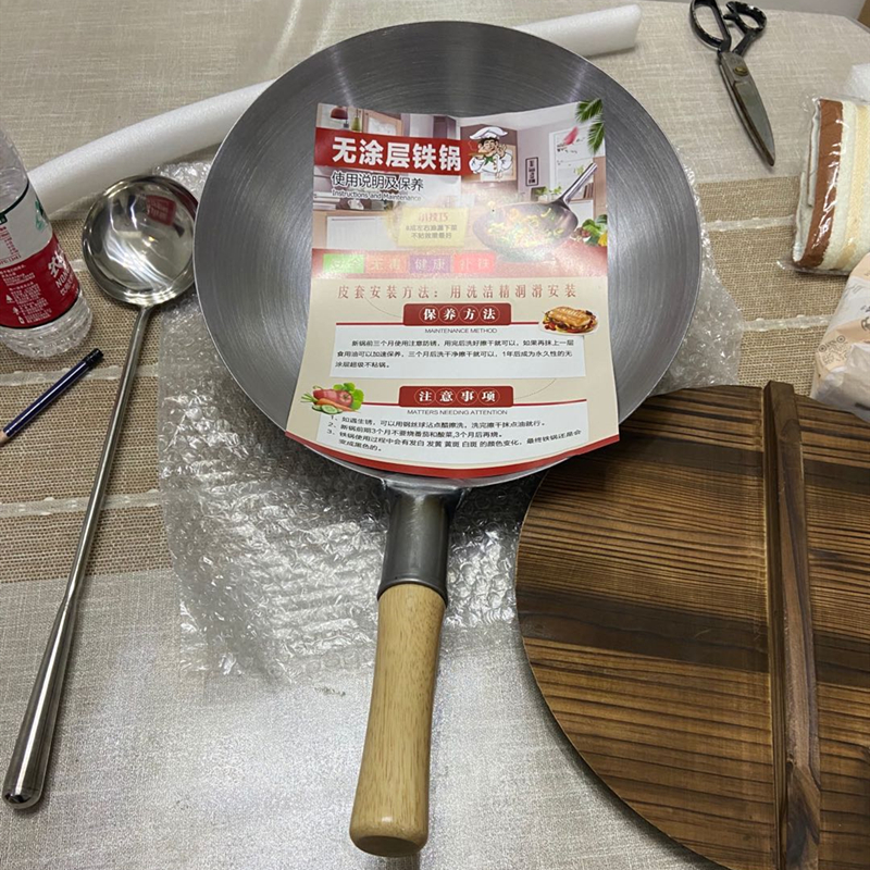 Hotel wok light women's non-stick non-coated household round bottom iron pan ultra-light book gas stove suitable