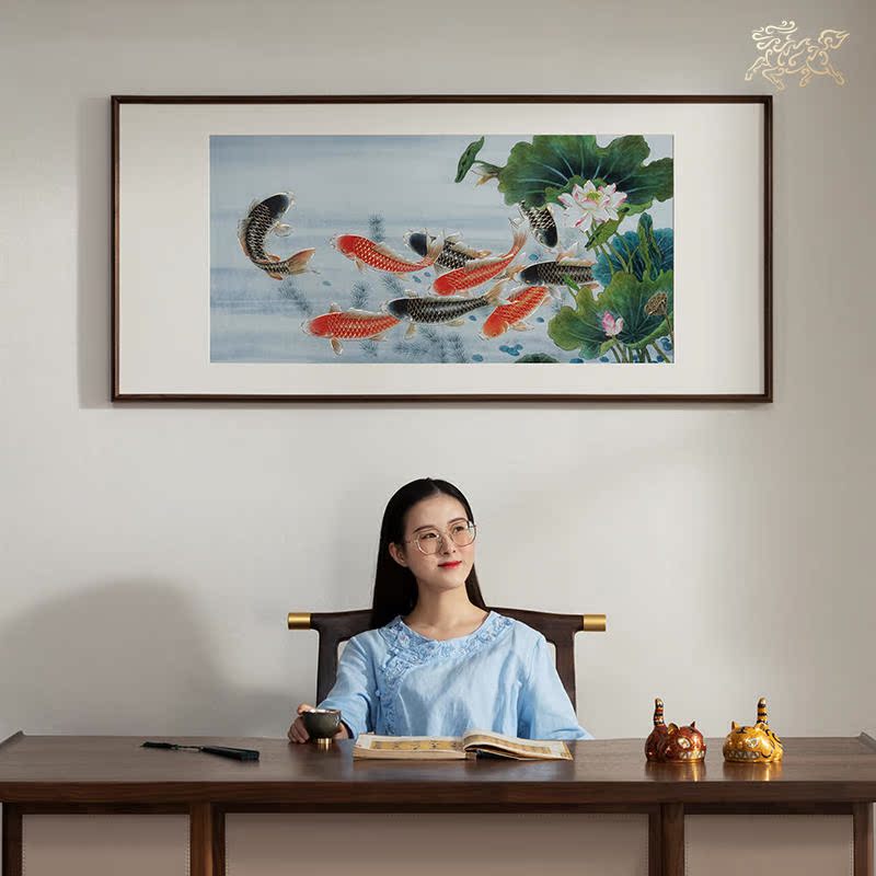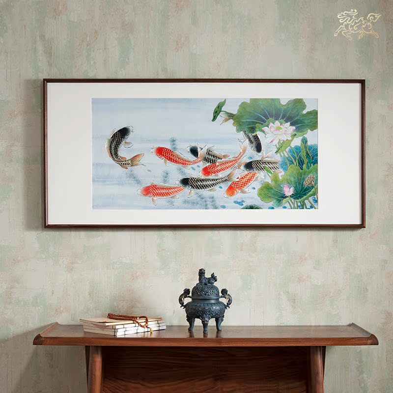 Bronze master craftsmanship carving bronze sculpture painting "Fugui Jiuyu Fig." decoration painting Xuanguan painting hanging painting fresco