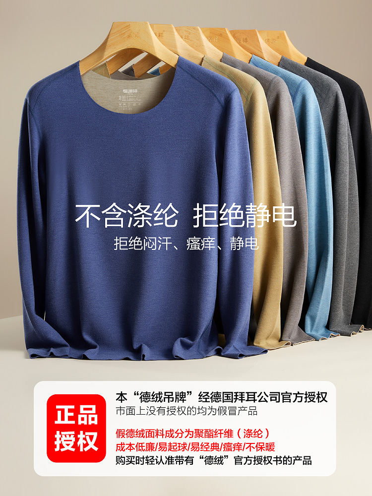 Hengyuanxiang silk de velvet seamless thermal underwear men's autumn clothes and long johns suit thickened with wool heating in winter