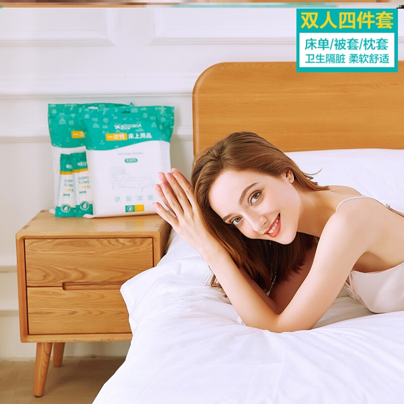 Travel disposable bed sheet quilt cover pillowcase travel double four-piece set isolation hotel supplies dirty quilt cover bath towel
