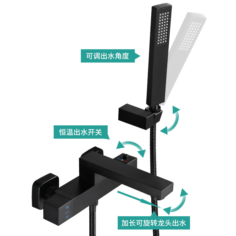Black regular bathtub built-in shower faucet Silver regular bathtub built-in shower faucet Black thermostatic bathtub built-in shower faucet
