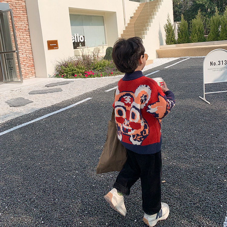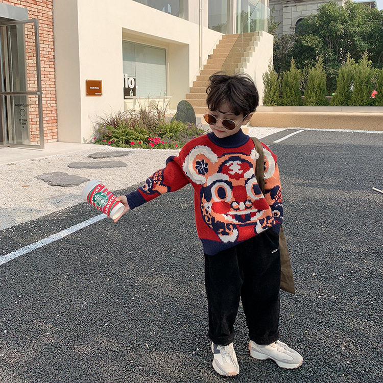 Children's sweater thickened cartoon tiger New Year's greetings jacket round neck neutral boys and girls winter pullover festive