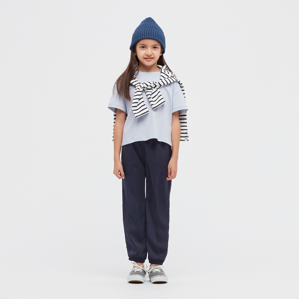 Uniqlo Child Clothing Girl Satin Flower Style Long Pants (Home Pants Sleeping Pants Air Conditioning Suit) 444214