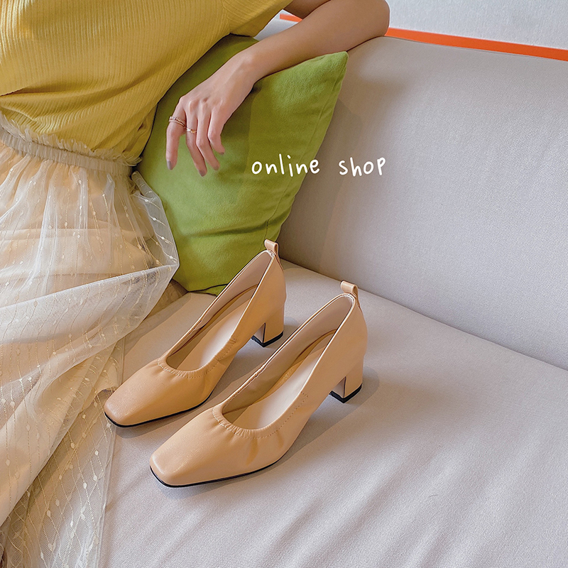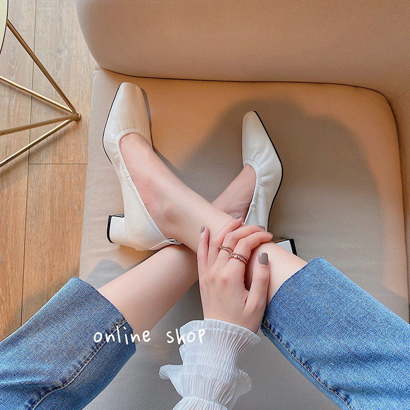 chic original design method extremely brief medium coarse heel square head shoes female high heel shoes genuine leather soft bottom grandma shoes
