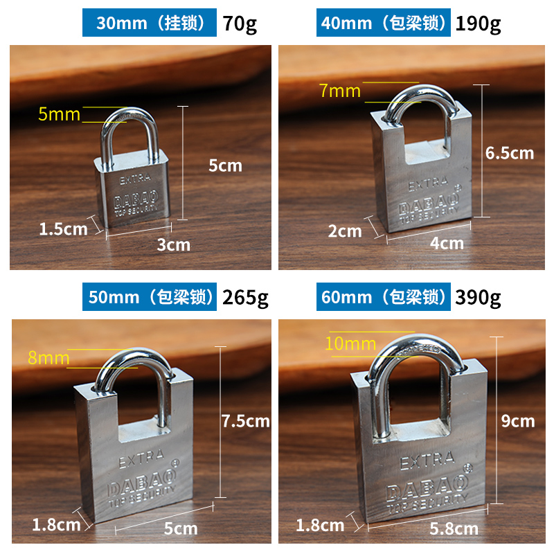 30mm (padlock) free 4 keys 40mm (anti-shear lock) free 4 keys 50mm (anti-shear lock) free 4 keys 60mm (anti-shear lock) free 4 keys