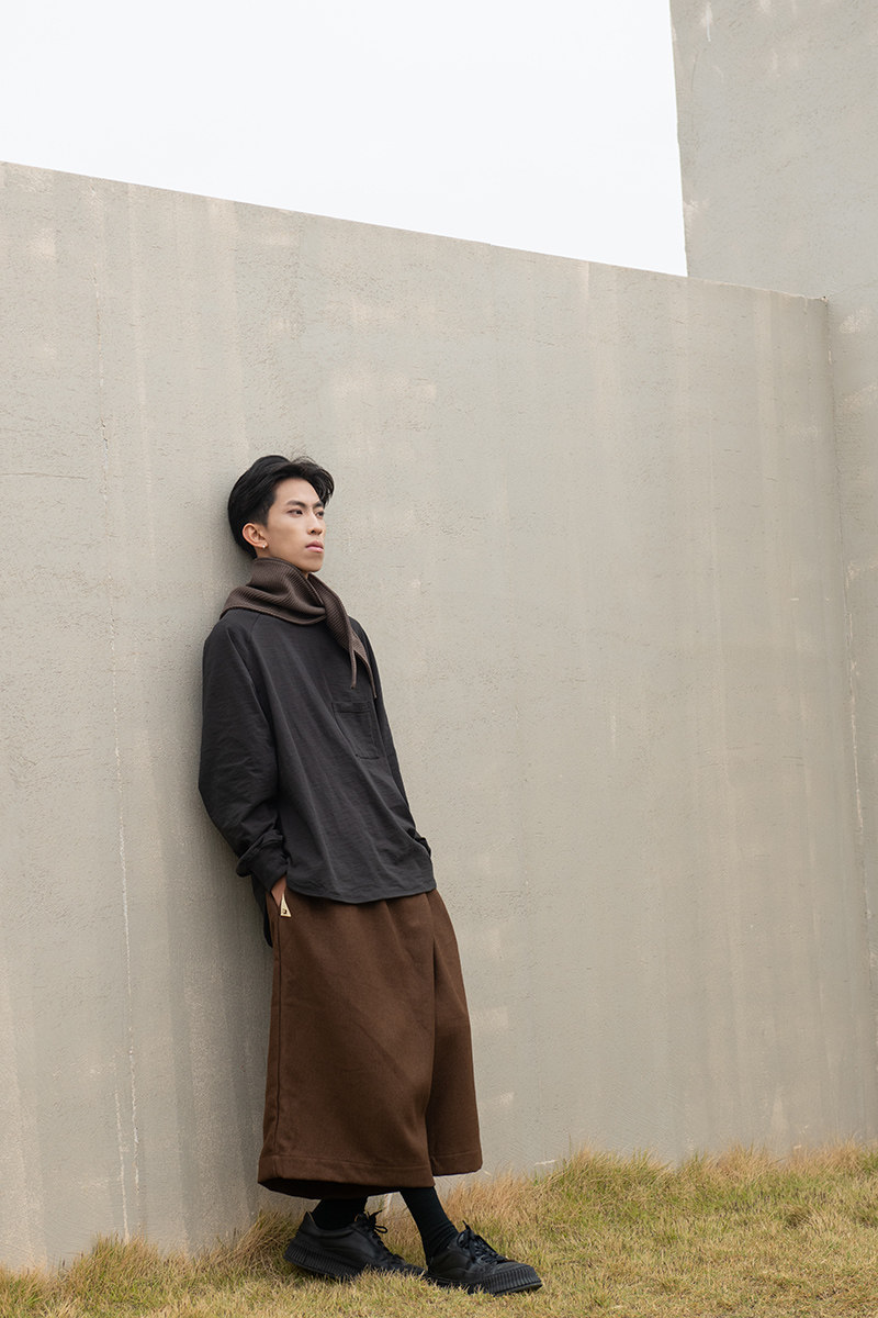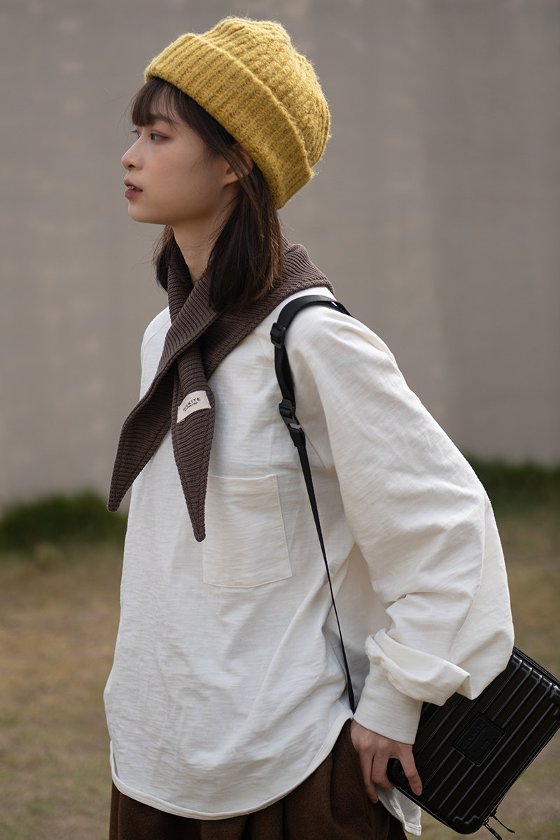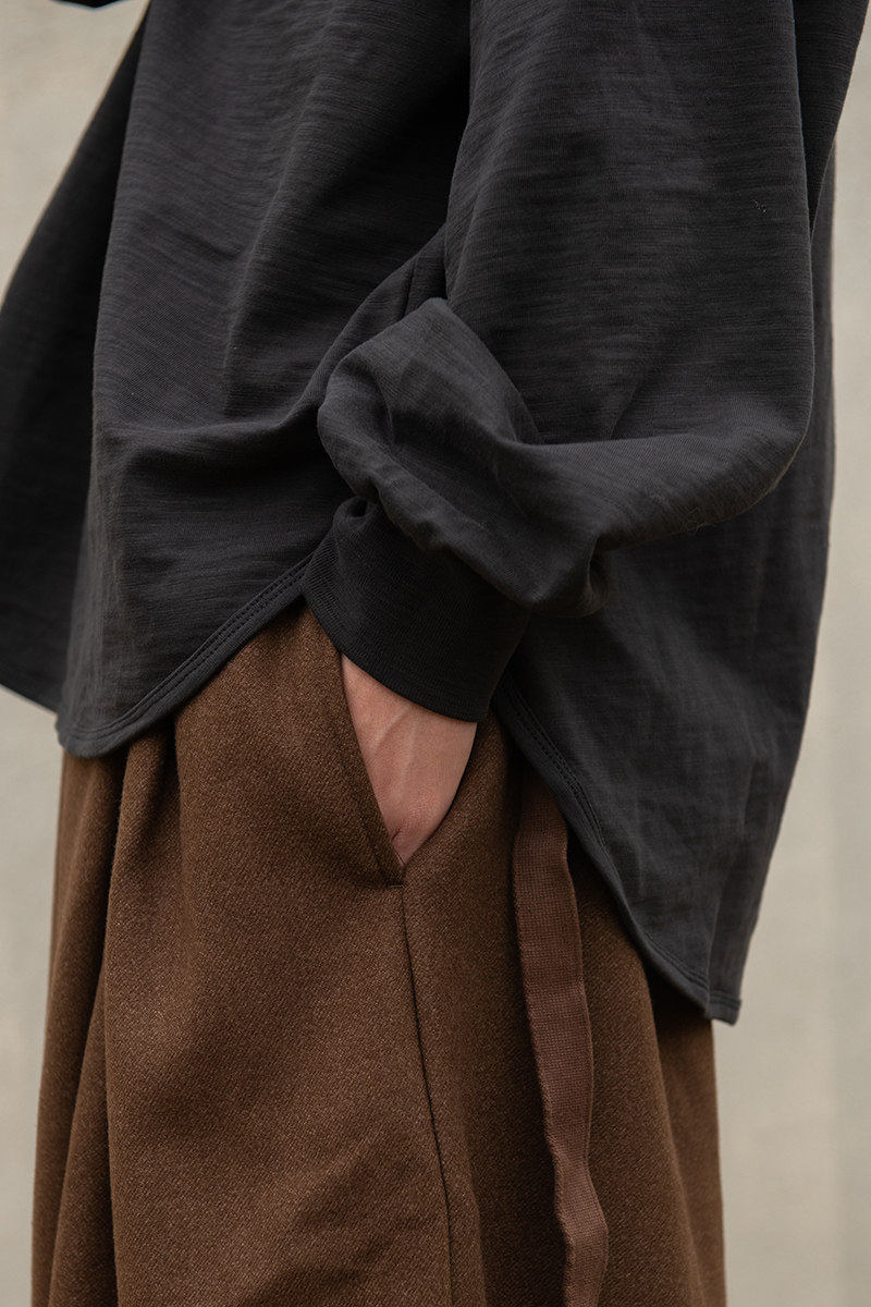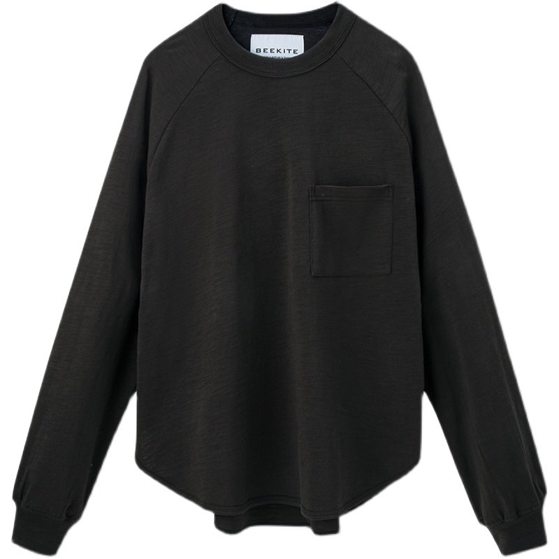 BEEKITE slub cotton profile arc hem long sleeve TEE front short back long raglan sleeves heavy retro and comfortable