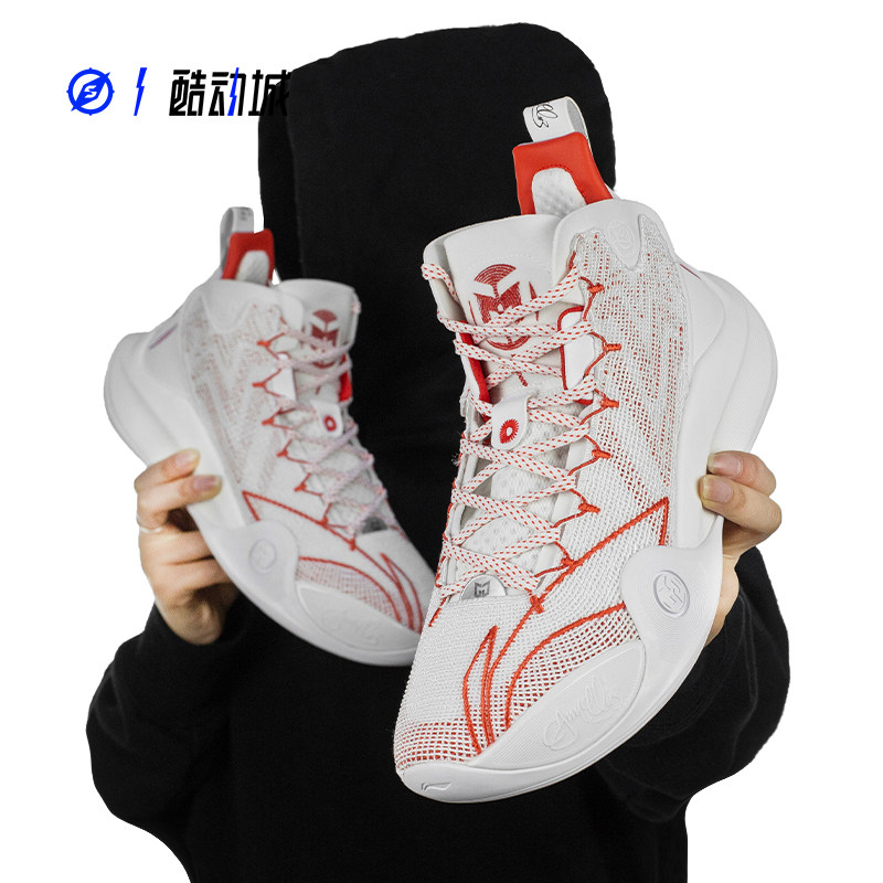 Compass LINING Li Ning CJ1 Mclum Generation CJ1 White Red Real Basket Sneakers ABAR019-6-20
