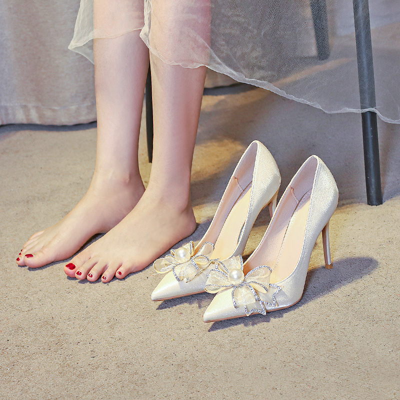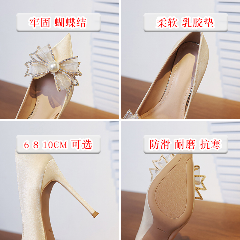 Design sense niche high-heeled shoes women's stiletto bow high-quality crystal shoes wedding shoes bridal shoes 2021 new