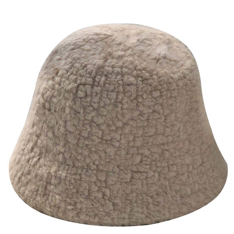 The plush bucket cap female and winter face small hair pot cap large head around 2021 new lamb hair tide