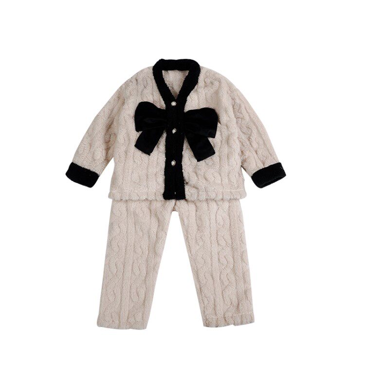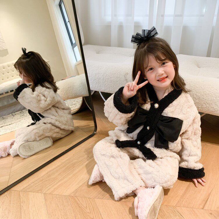 Girl Butterfly Coral Housewear Winter Children Thicken Flnnel Little Girl Warm Nightgown Two Pieces