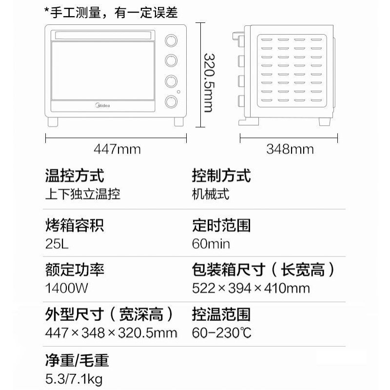 Midea Midea PT25X1 new fresh electric oven up and down independent temperature control 25L home uniform baking