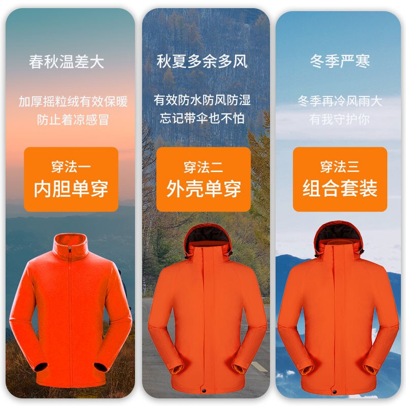 Autumn and winter thickening and fleece mountaineering jackets outdoor removable three-in-one jackets for men and women can be customized with printed logo