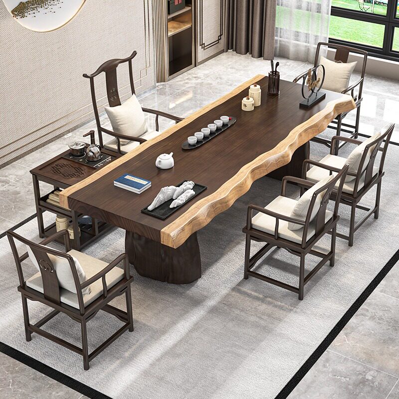 Tea table chair combination New Chinese solid wood Gongfu tea Several commercial office Zen Serve tea table log large plate tea table