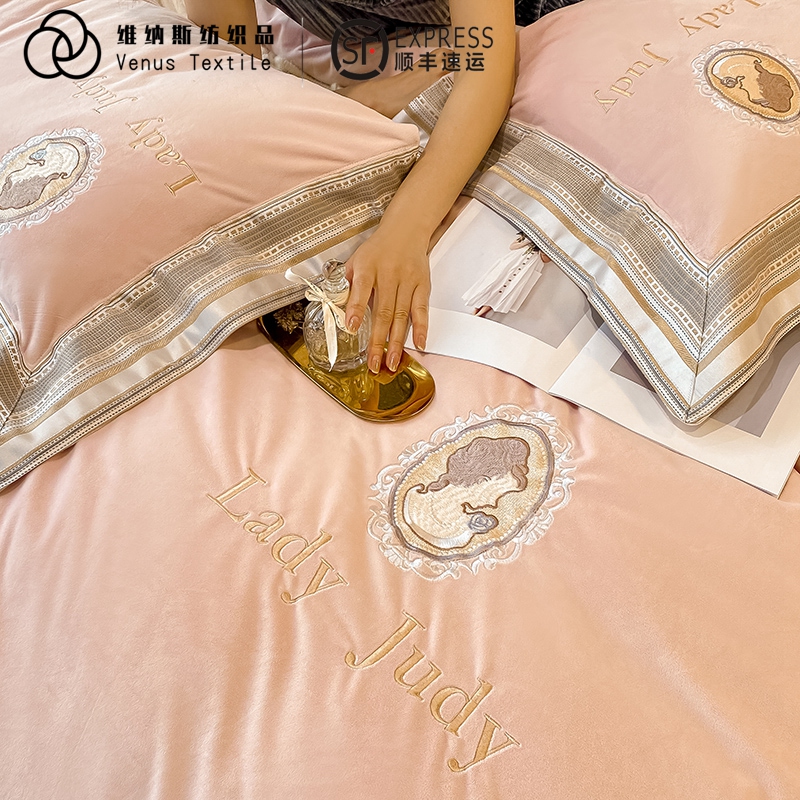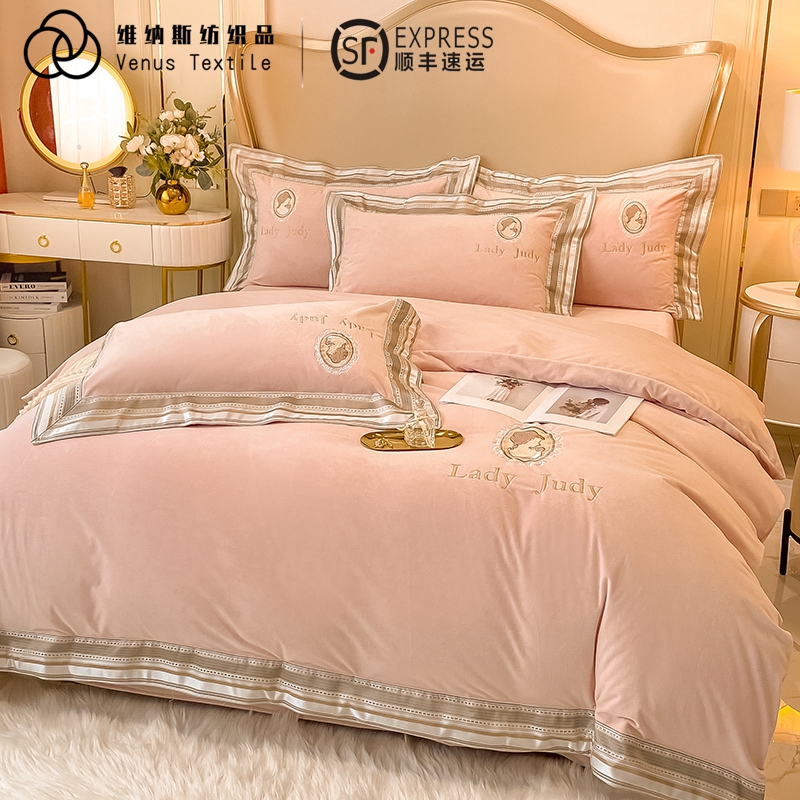 Baby suede Four pieces of Coral Suede Bed Linen Bed Hat Milk Suede Flannel Velvet Bed Upper Supplies Spring Autumn Season winter
