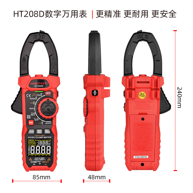 HABOTEST digital display intelligent high-precision 1000A high-current clamp ammeter electrician universal meter HT208AD