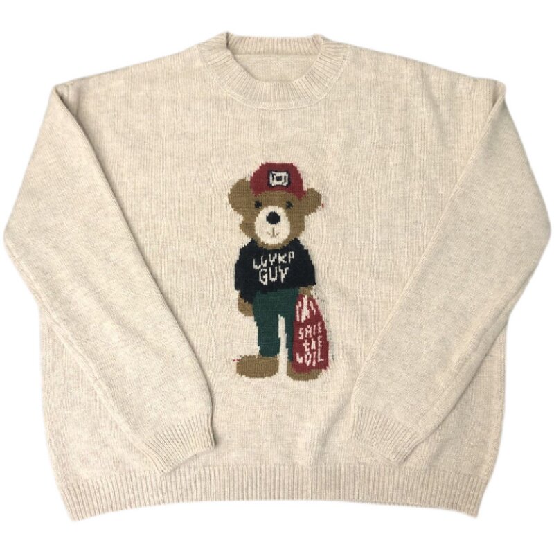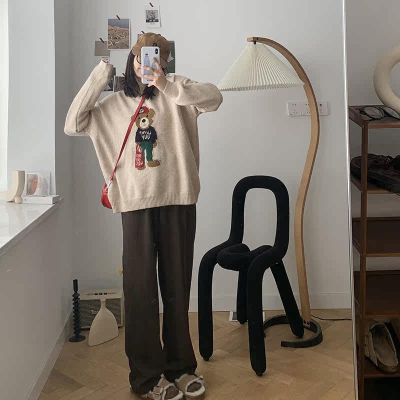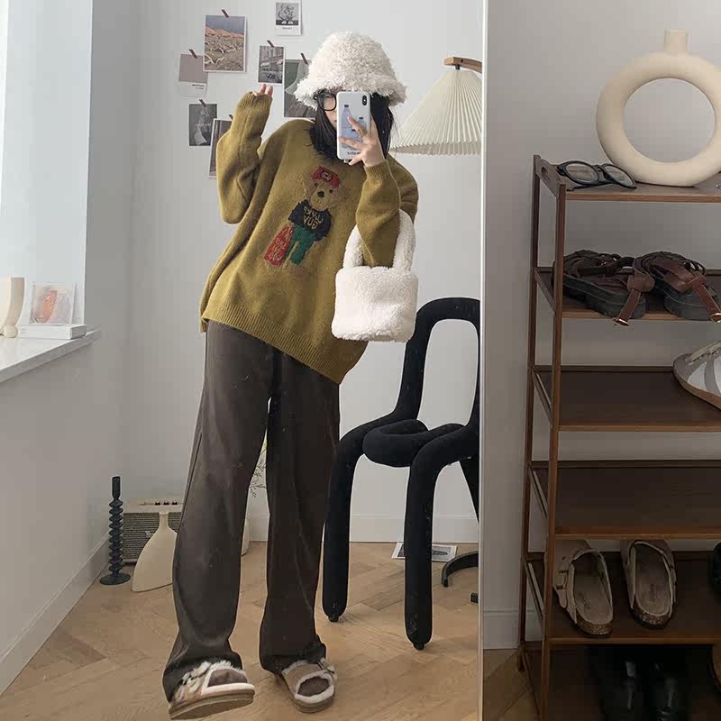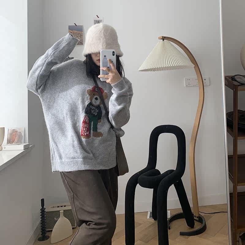 Generally cute raccoon hair pullover sweater women's 2021 new autumn and winter outer wear inner print loose and lazy style