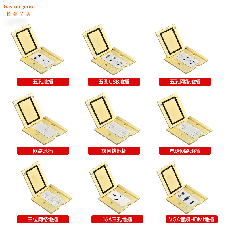 Gold floor socket clamshell type 86 type six-hole floor socket multi-function multi-double three-hole floor floor socket