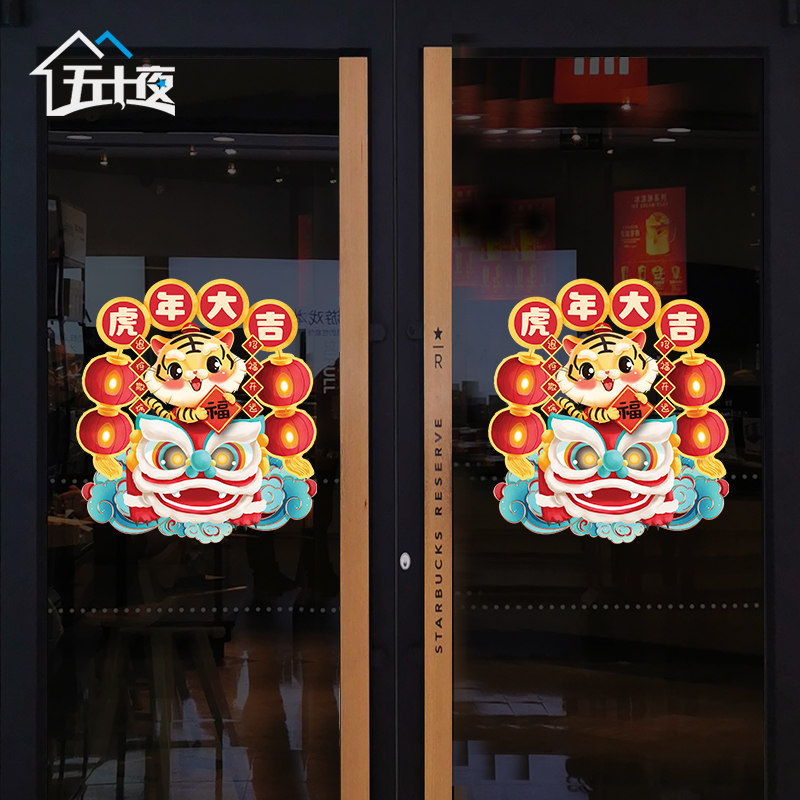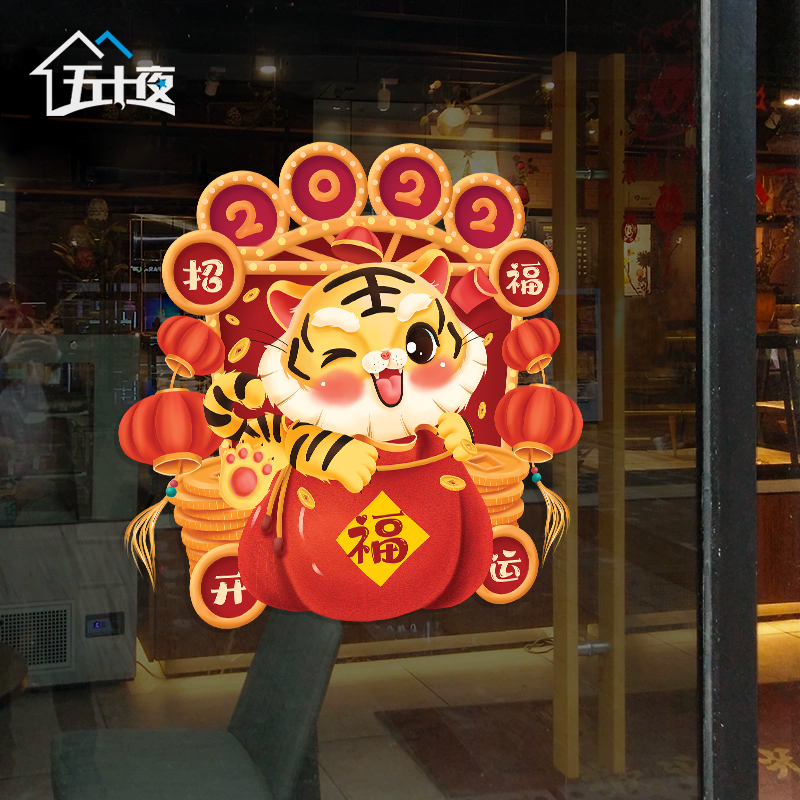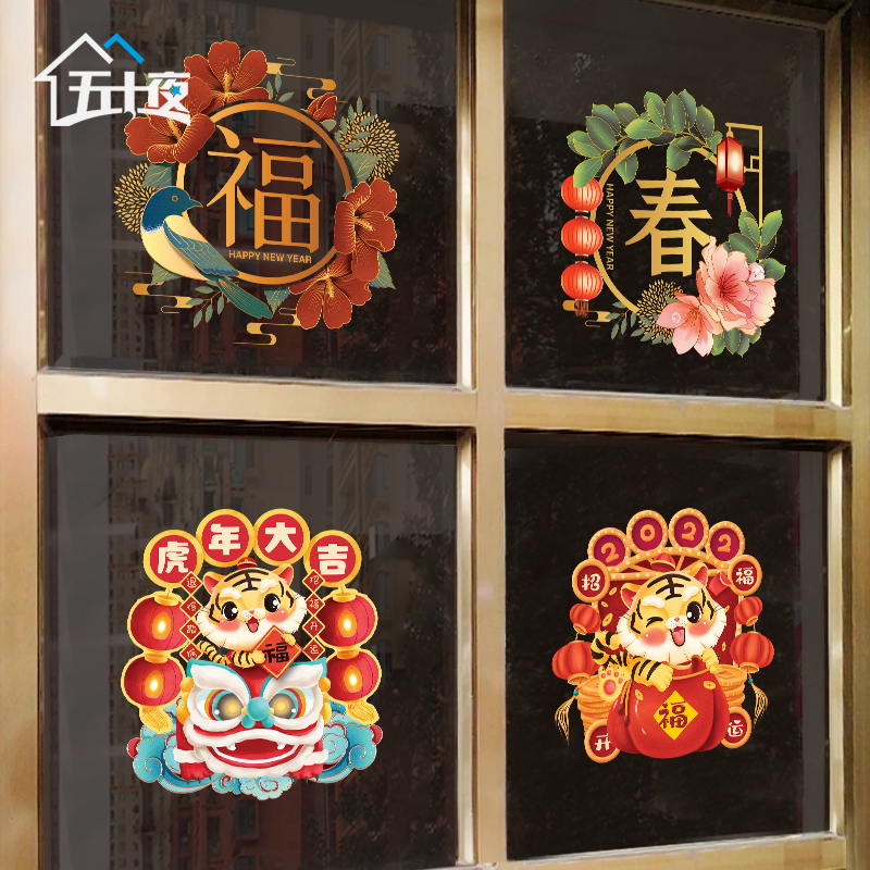 New Year's Quiet Sticker 2022 Window Sticker Spring Festival Lucky Word Door Sticker Window Glass Sticker New Year's Window Sticker