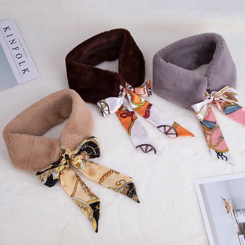 Cute imitation rabbit hair silk scarf women's winter thickened warm diy neck guard collar material package 427# Shoot 4 pay 3