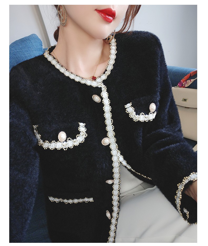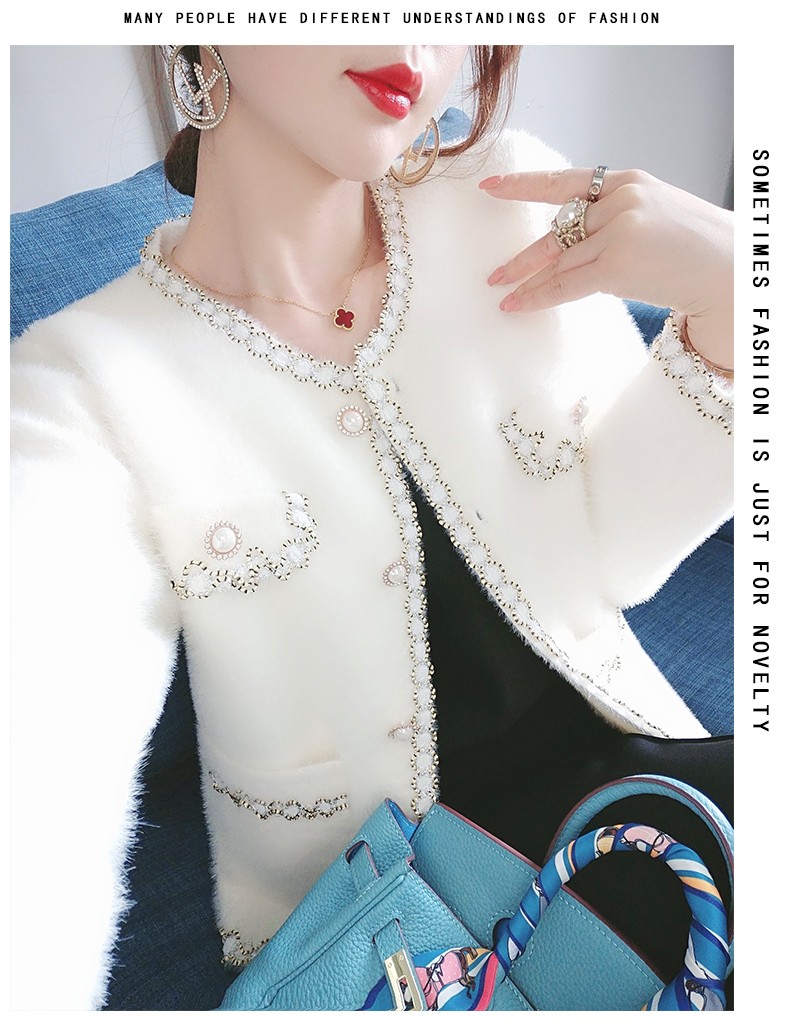 Small fragrant wind jacket 2022 new spring autumn casual fashion 100 lap water mink velvet round collar short version open flap jacket blouse women's clothing