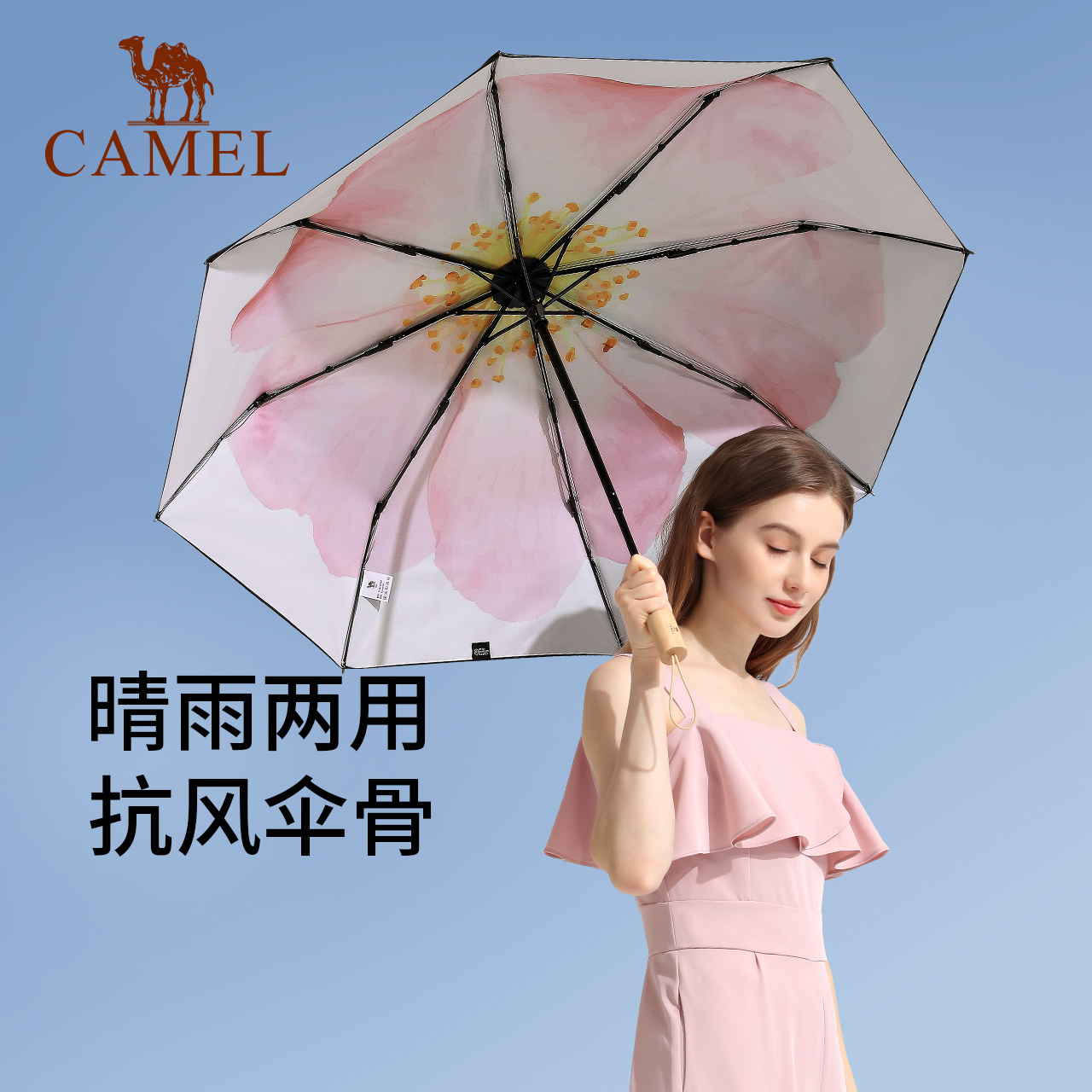 Camel sunscreen anti-UV parasol with strong high-value parasol parasol double-layer black umbrella