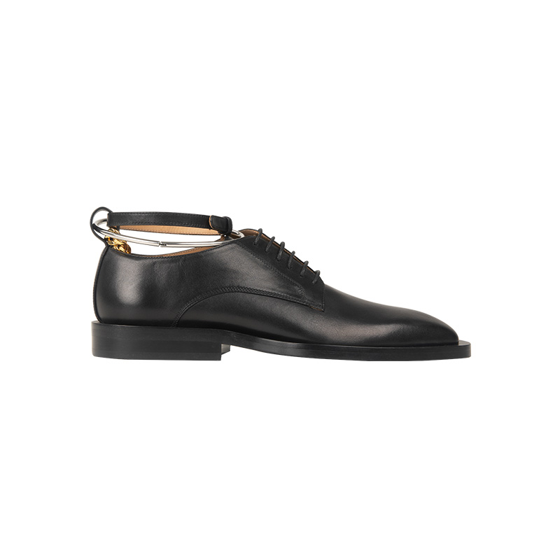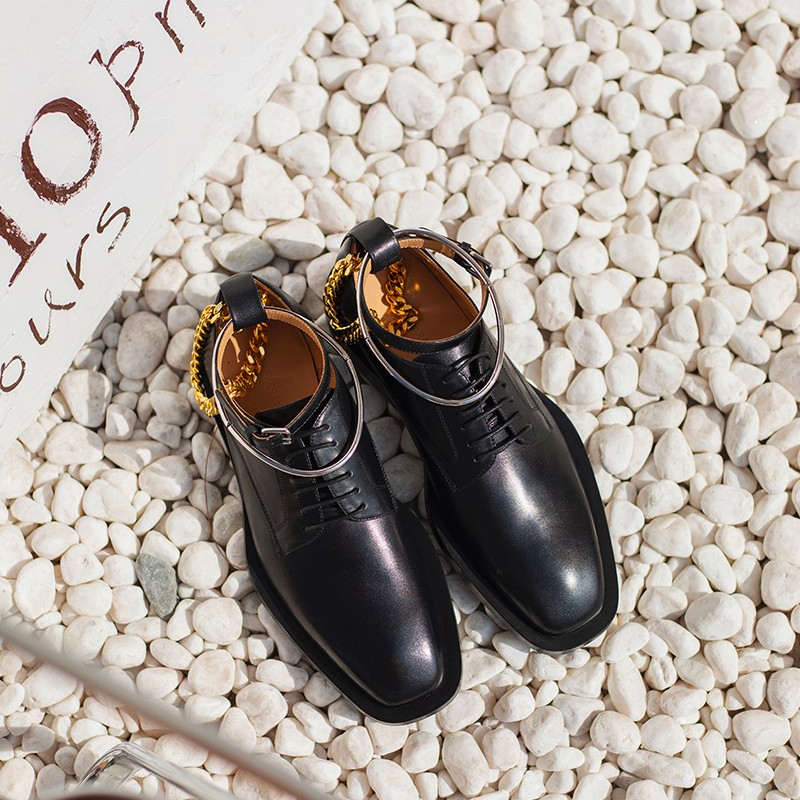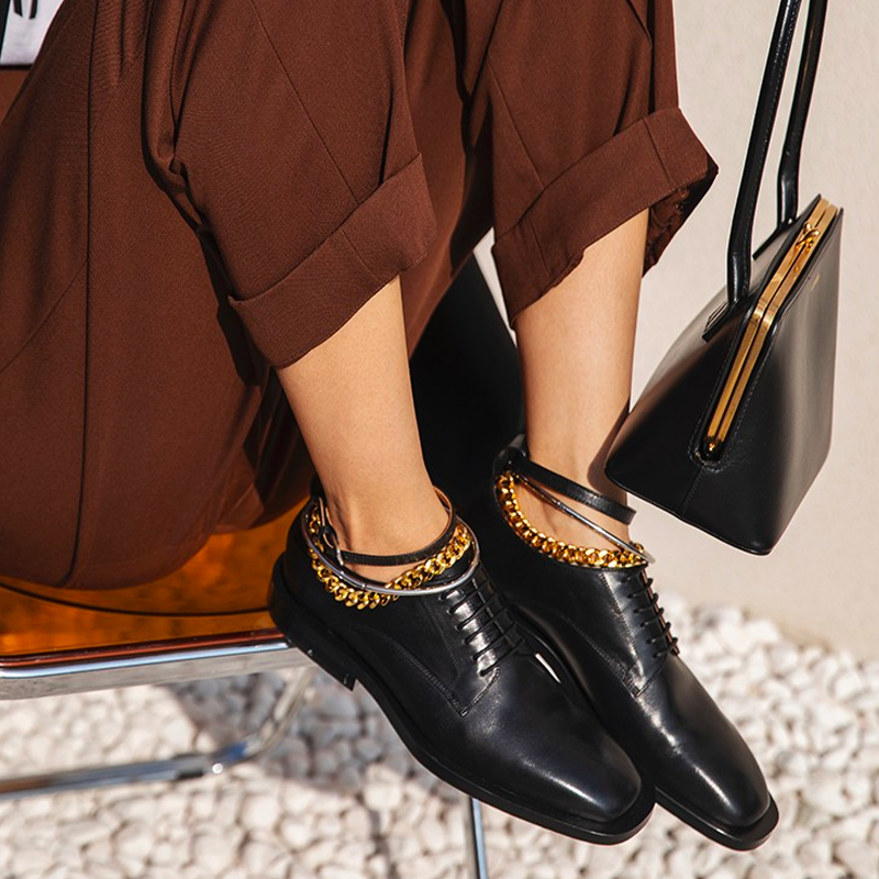 ALEXSARA small leather shoes female Inn Wind 2021 new autumn and winter 100 lap strap metal chain flat bottom square head shoes