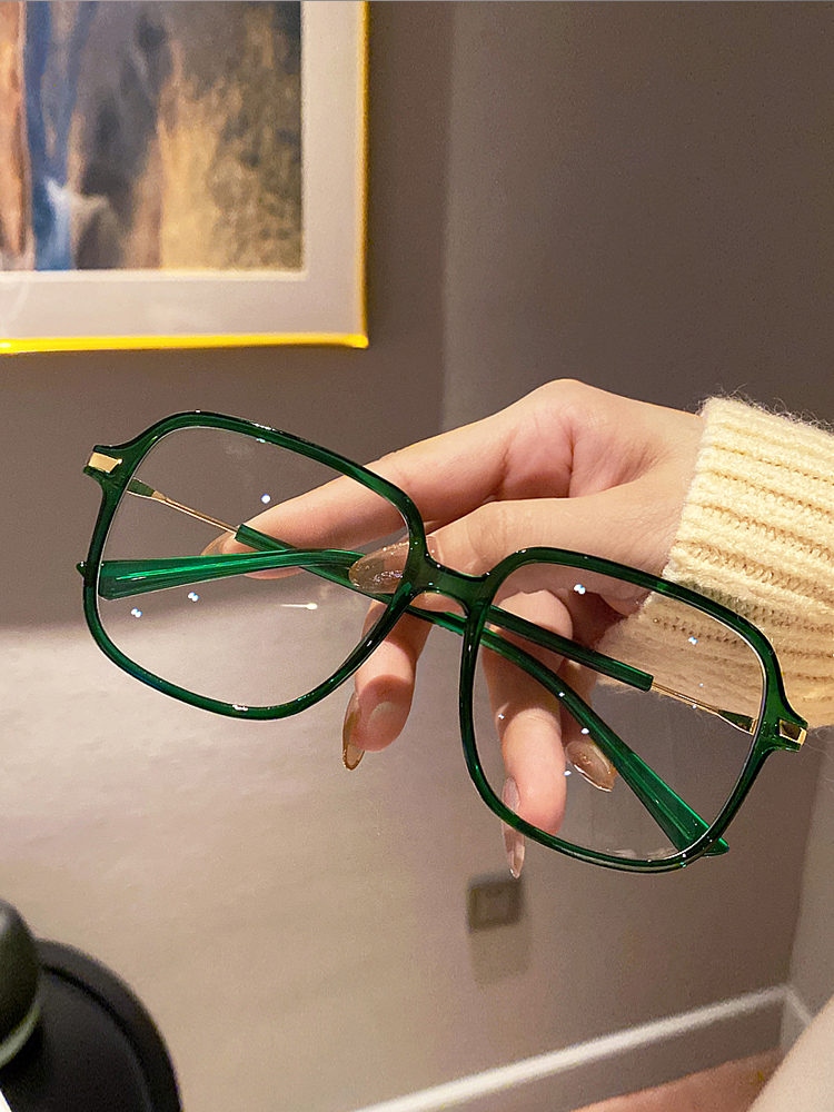 Cospp Kosp green big frame glasses women's day department vegan decoration no degree flat mirror blue light glasses man
