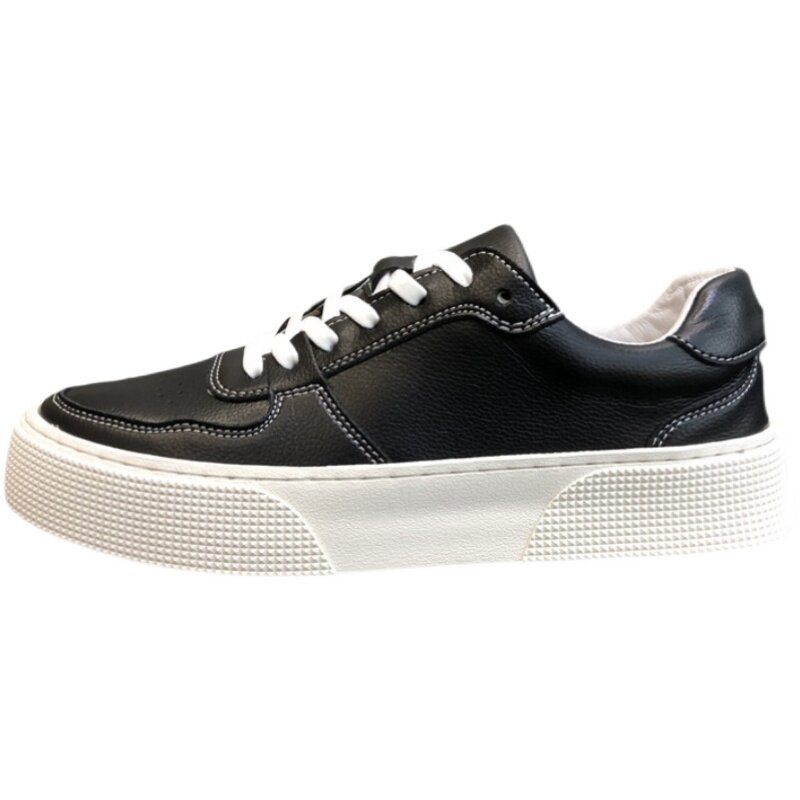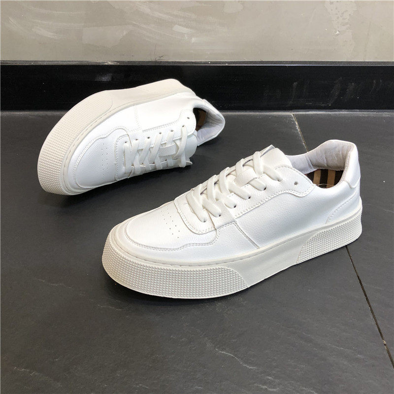Small White Shoes Men Genuine Leather New Summer Men's Thick Bottom Lacing 100 Hitch Casual Shoes Pure Color Heightening White Board Shoes Men