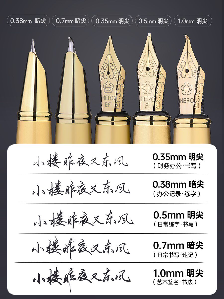 0 35mm 35mm EF tip (minaret pen) 0 38mm (dark tip pen) 0 5mm (minaret pen) 0 7mm (dark pointed artificial pen) 1 0mm