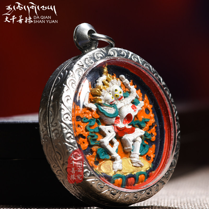 Big Thousand Good Edge Tibet Mil's Painted Corpse to wipe out the small Buddha statue Pendant Hide and Gaga Box