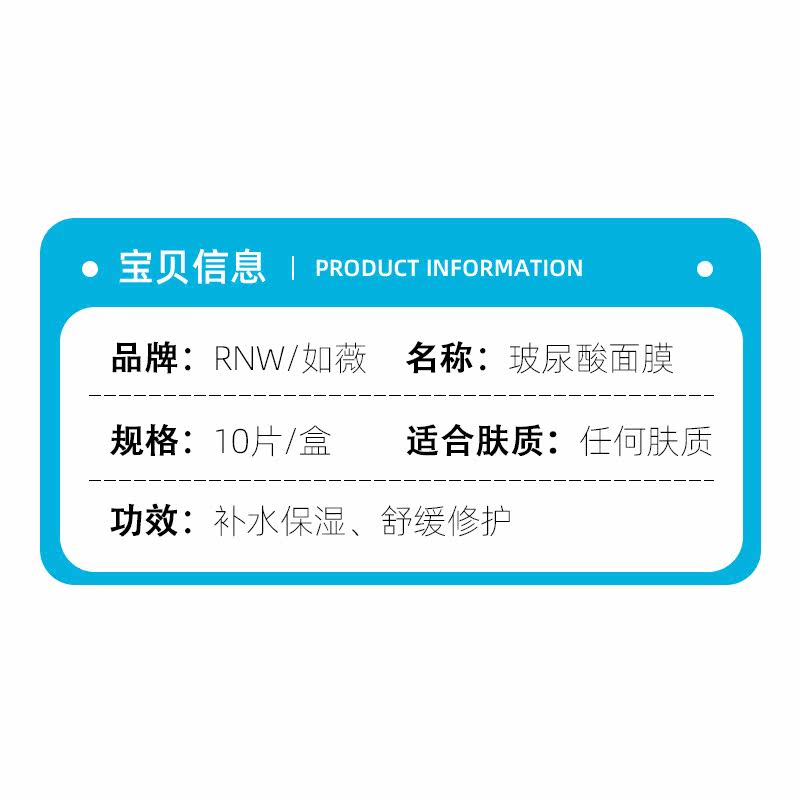 RNW hyaluronic acid moisturizing moisturizing shrink pores soothing repair students stay up late first aid mask 10 pieces