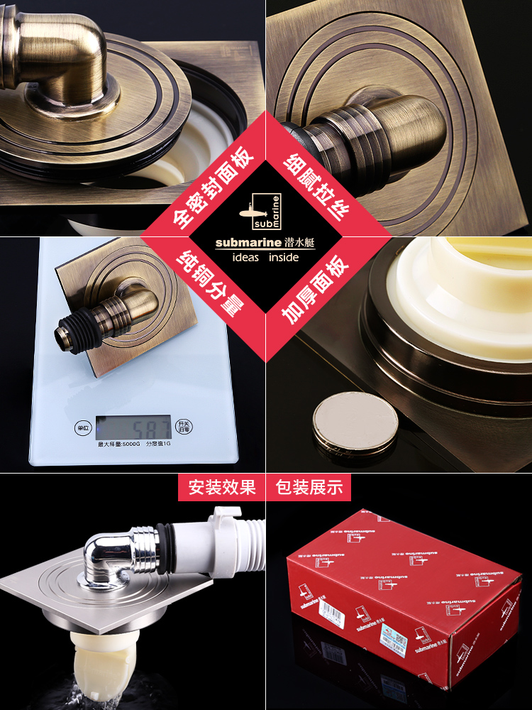 Submarine washing machine dedicated floor drain all copper deodorant and anti-water official flagship store overflow three-way shower dual-use