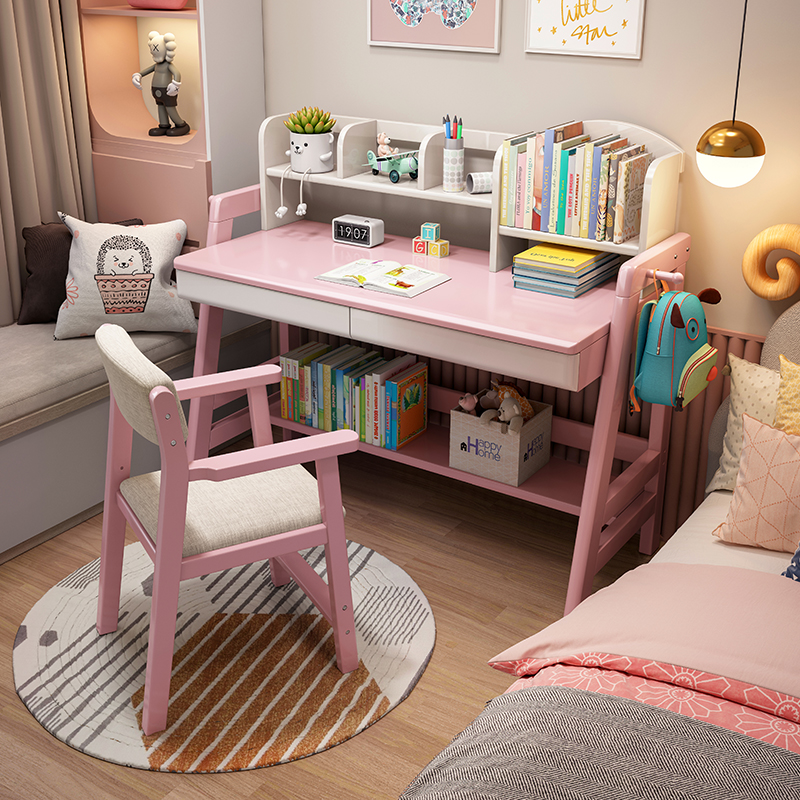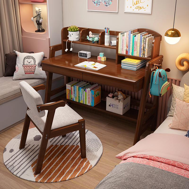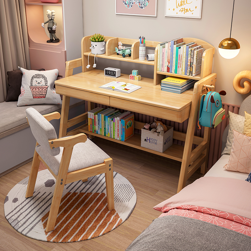 Children's desk can lift solid wood study table with bookshelf simple home primary and secondary school students writing desk desk chair