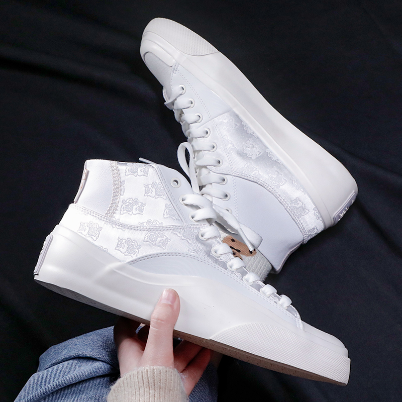Li Ning Casual Shoes Woman 2022 Spring new Japanese Entrance Bucket Gold High Cylinder Plus Suede Board Shoes Sails Shoes AGCS010