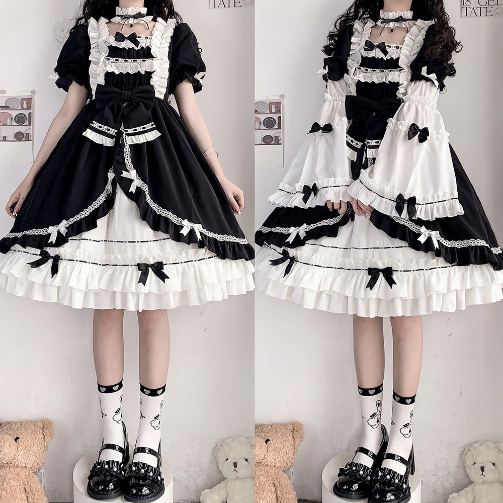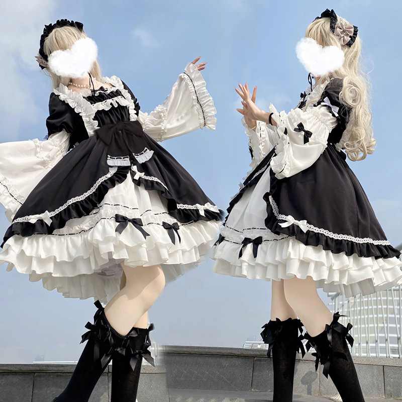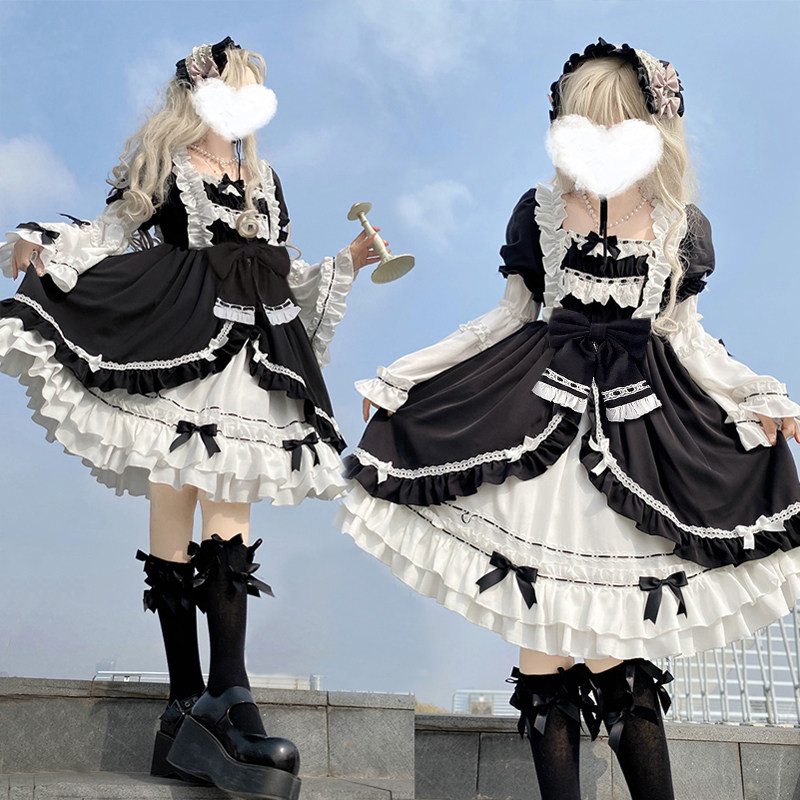 Original white night aurora Lolita Gothic dress dark autumn jie sleeve sweet soft sister Loli Lolita dress