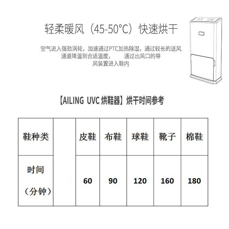 Single drying type Drying a pair of shoes Sterilization and deodorization Drying a pair of shoes Drying Sterilization and deodorization Upgraded drying two pairs of shoes Single drying type Upgraded drying two pairs of shoes