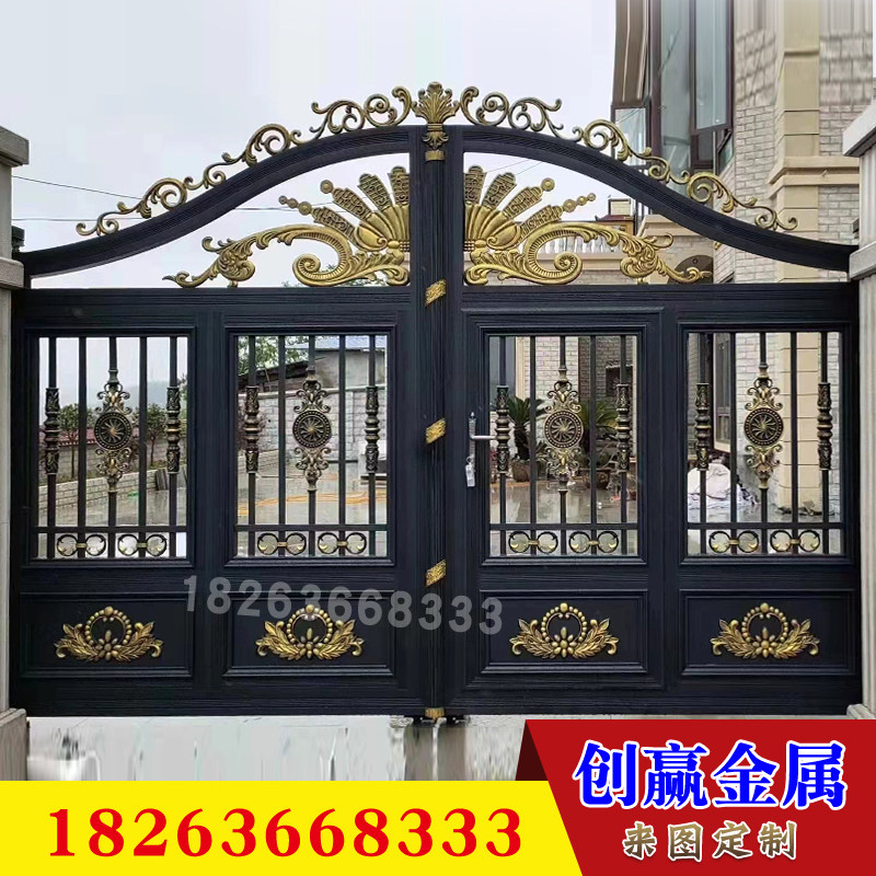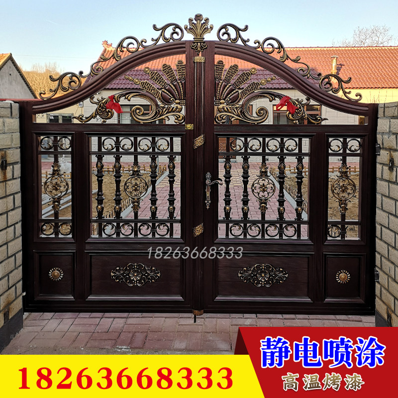Aluminum art gate villa opposite door self-built house Chinese-style gate aluminum alloy gate rural courtyard translation automatic door