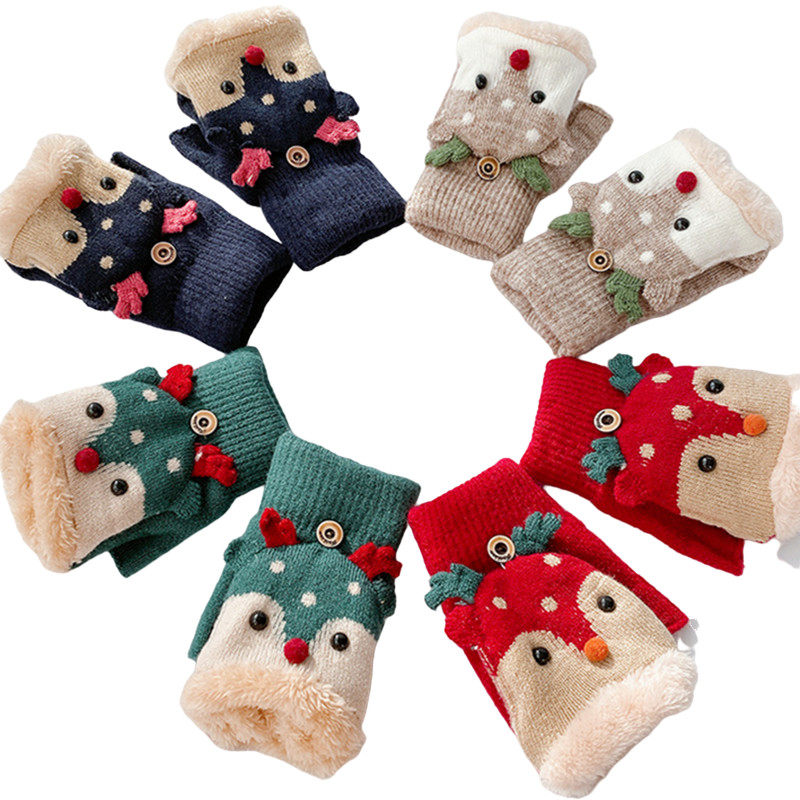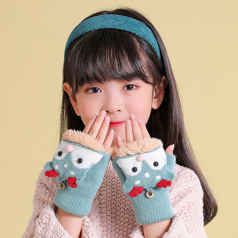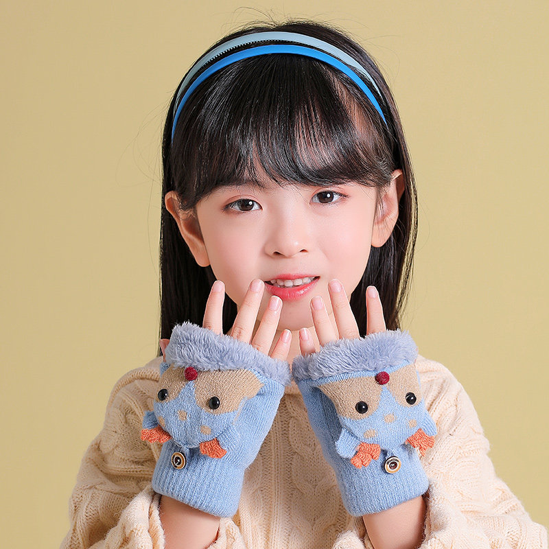 Japanese children's gloves in winter cartoon written dew finger finger gloves with semi-cut hair keeper heat plus-plus-covered