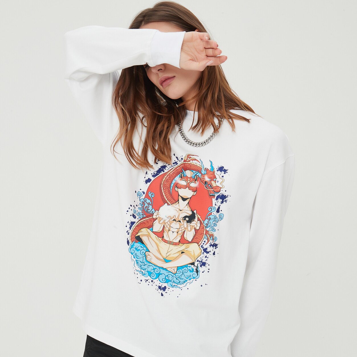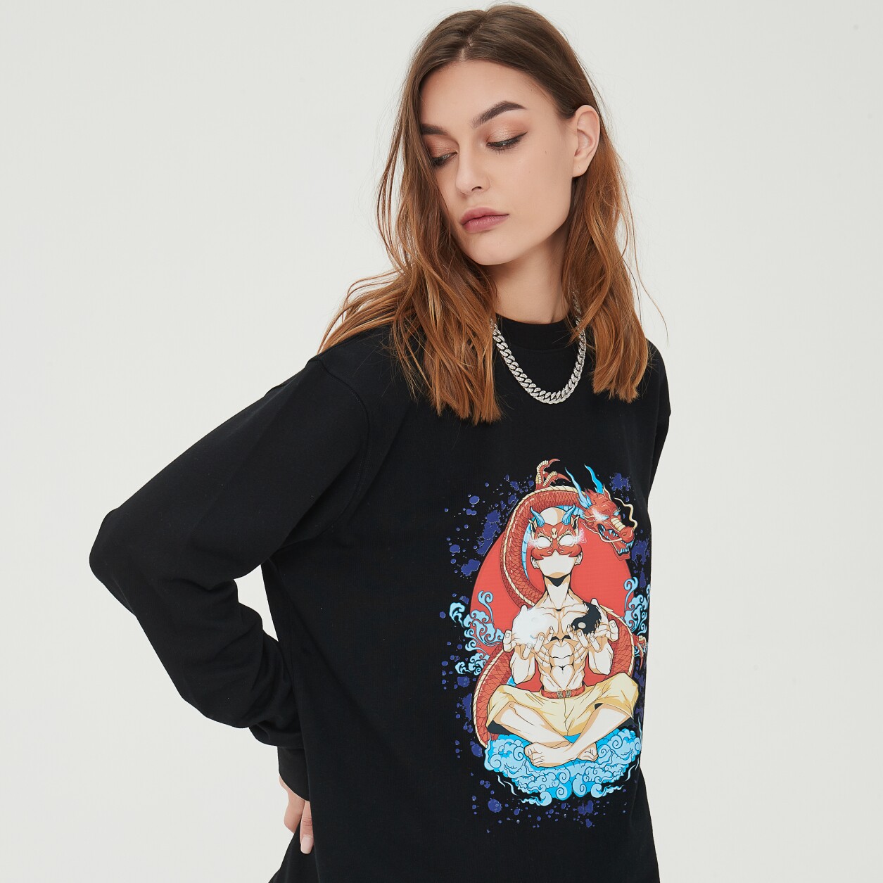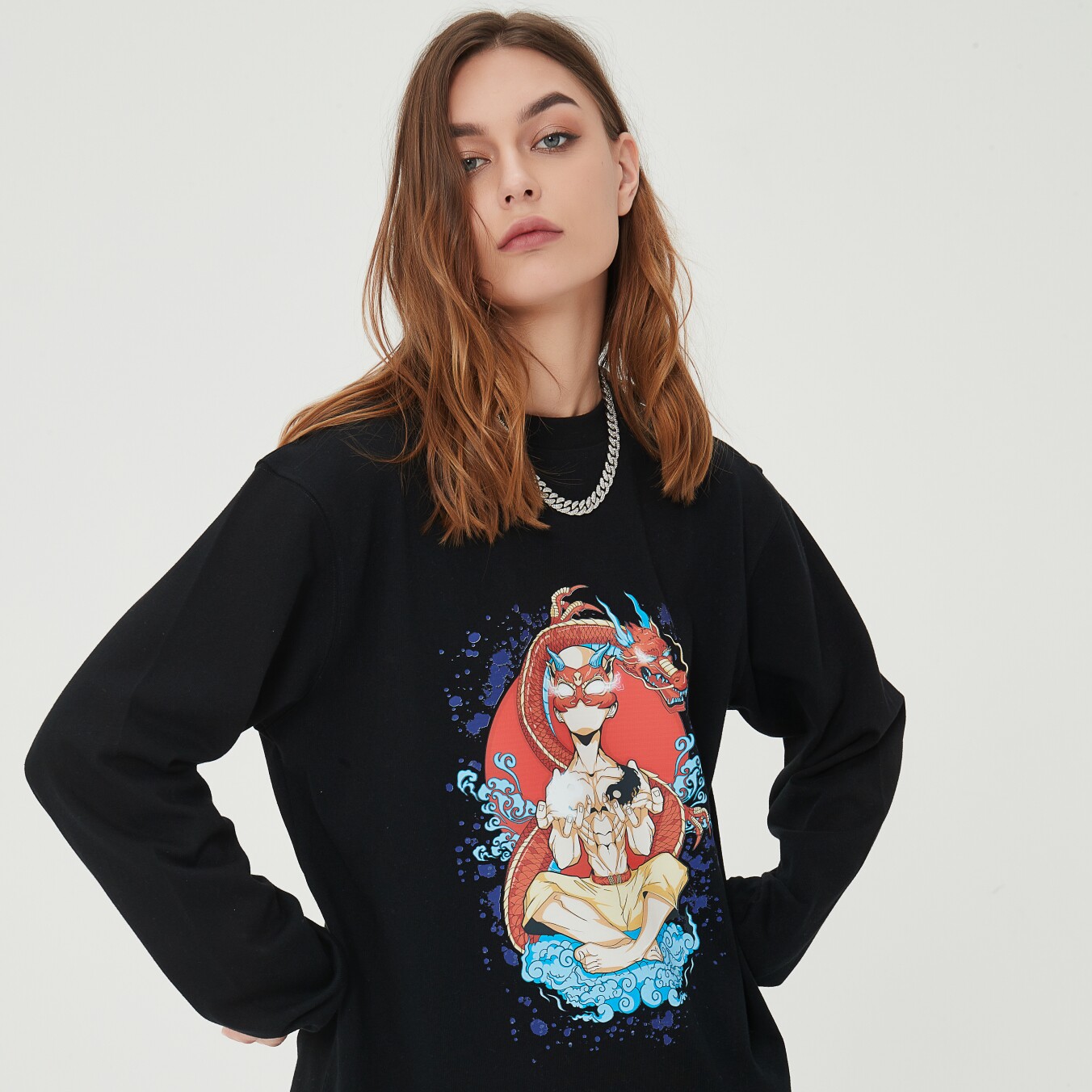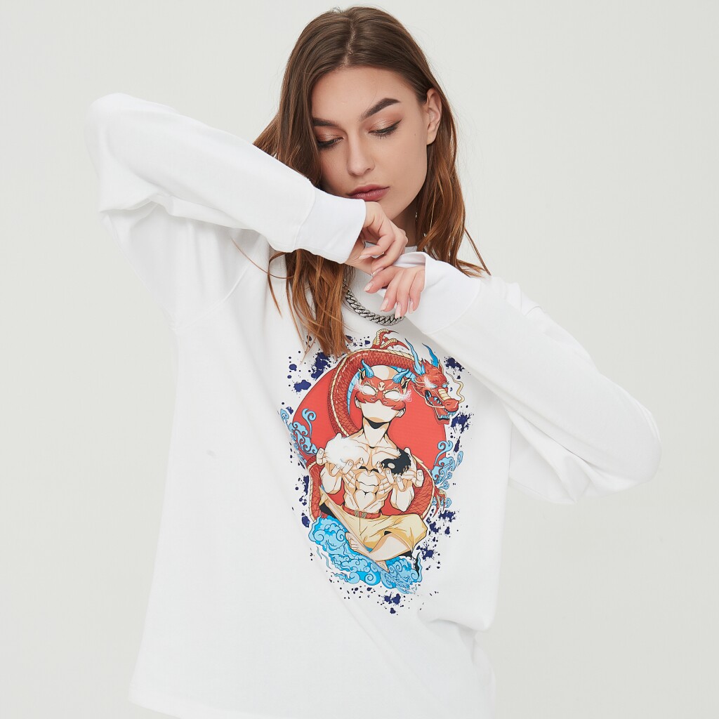 Traphero national trend oversize cotton thin section printed round neck street fashion casual men and women with the same sweater