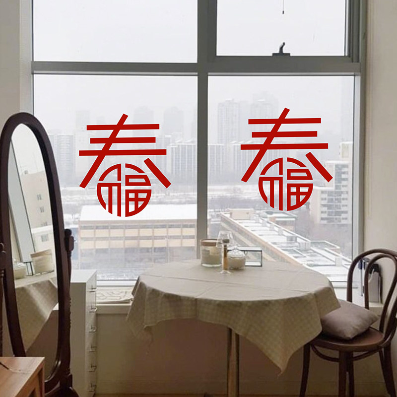 New Year Fu word Spring Festival stickers Chinese New Year festive shop window door decoration balcony living room glass window grilles