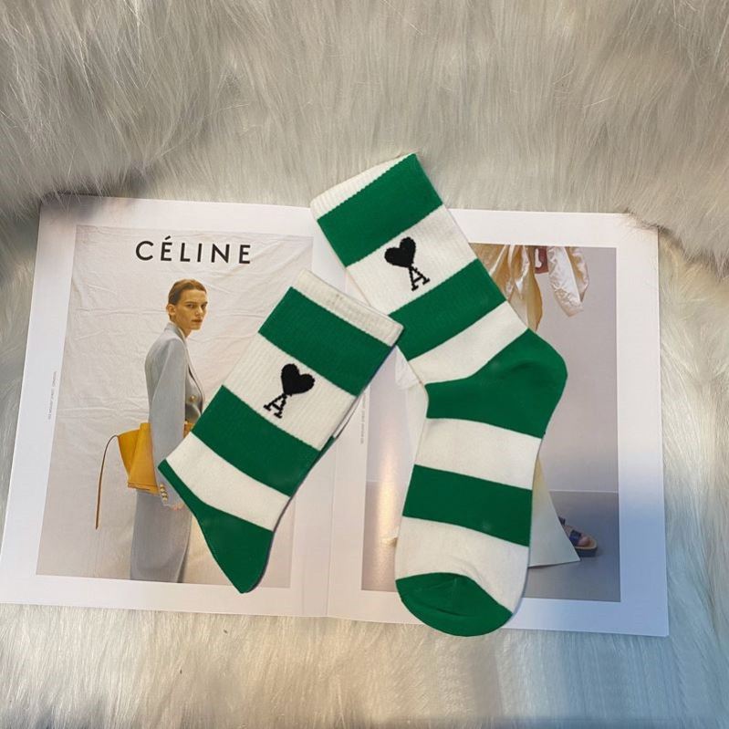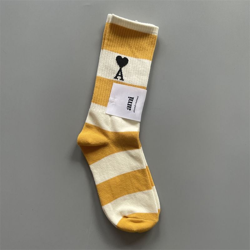 Tide Cards Ami Socks French Designer Embroidery Horizontal Stripes Red Black Peach A Love Letter Academy Wind in the Breeze Silo Socks