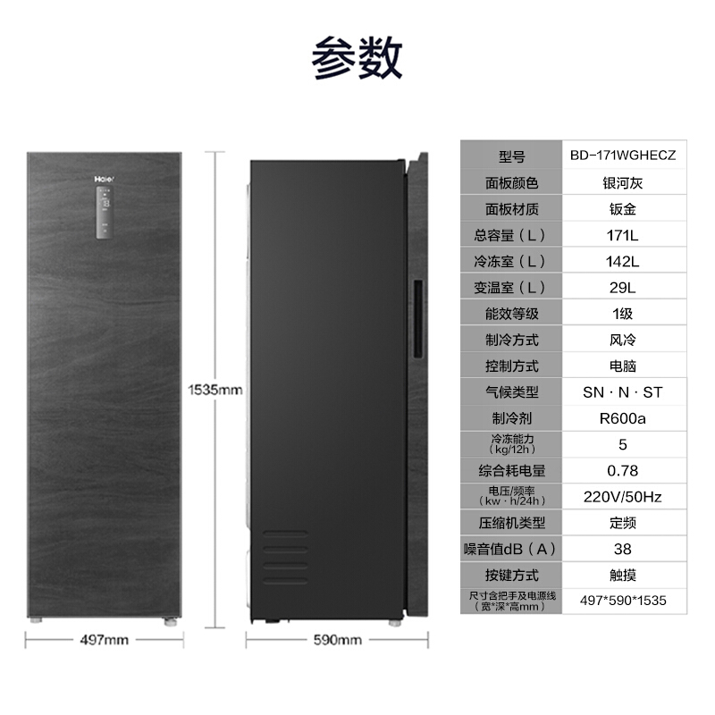 Haier Ice cabinet Vertical Home Drawer Air-cooled Frost-free Chilled Frozen Fridge BD-171WGHECZ