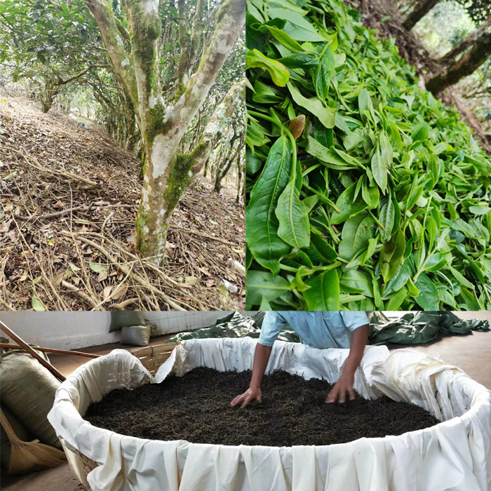 Brown Mountain big tree cooked tea Xishuangbanna Menghai flavor ancient tree Pu'er tea bamboo basket fermented off the ground 500g